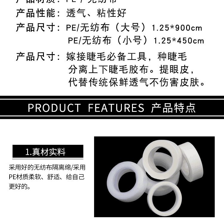 Оптовая продажа привитых ресниц небольшая клейкая лента изолированная клейкая лента для разделения верхних и нижних ресниц нетканая клейкая лента PE лента