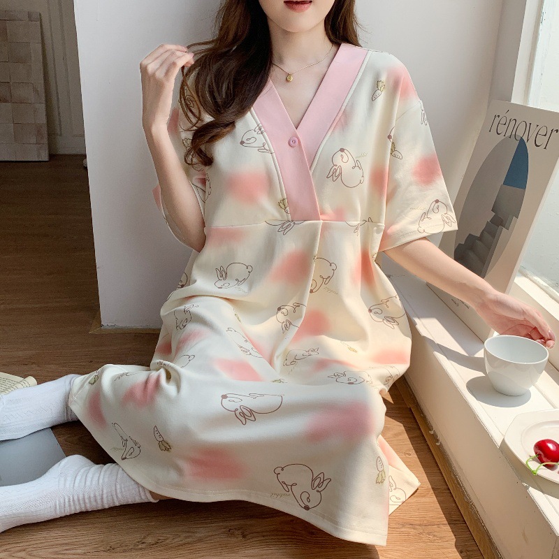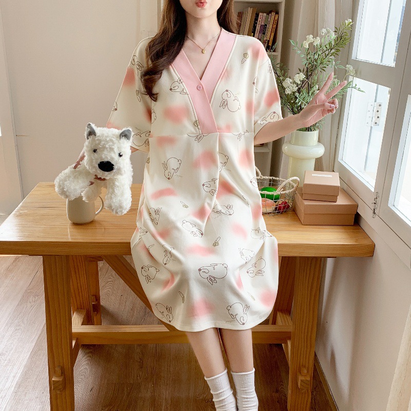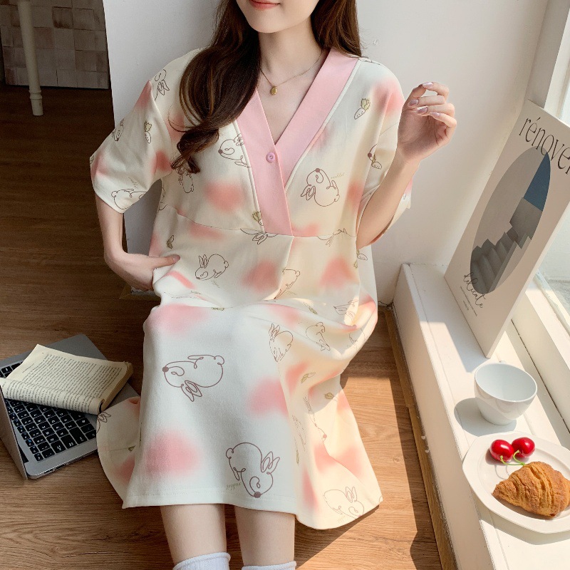Весенне-летняя одежда для Луны Мультяшное Платье для кормления Одежда для кормления Беременные женщины Пижамы Послеродовой выход Горячая мама Одежда больших размеров