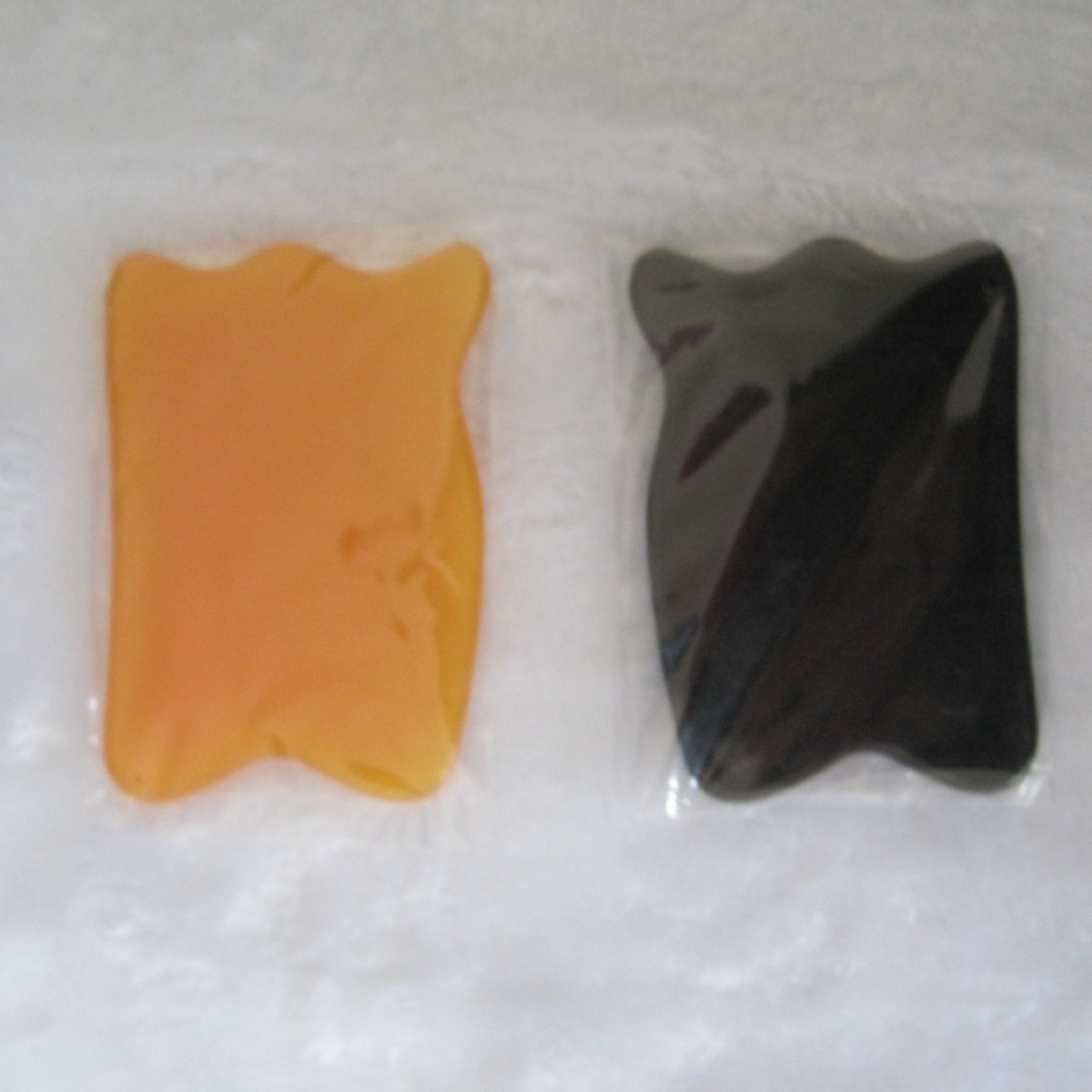 此刮痧板材料为无毒环保树脂,含独立包装。约8*5.5厘米,现货为黑色和黄色,要指定颜色,拍下留言哦,