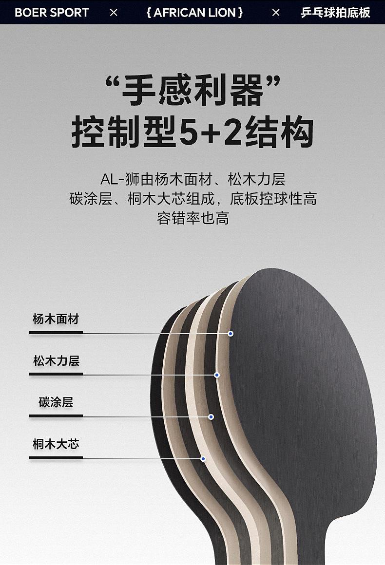 Настольный теннисный наклад на ракетку Boer AL-Lion, 5+2 слоев, цельное дерево, для начинающих, имитация карбона, цельный блок, дропшиппинг, бесплатная доставка