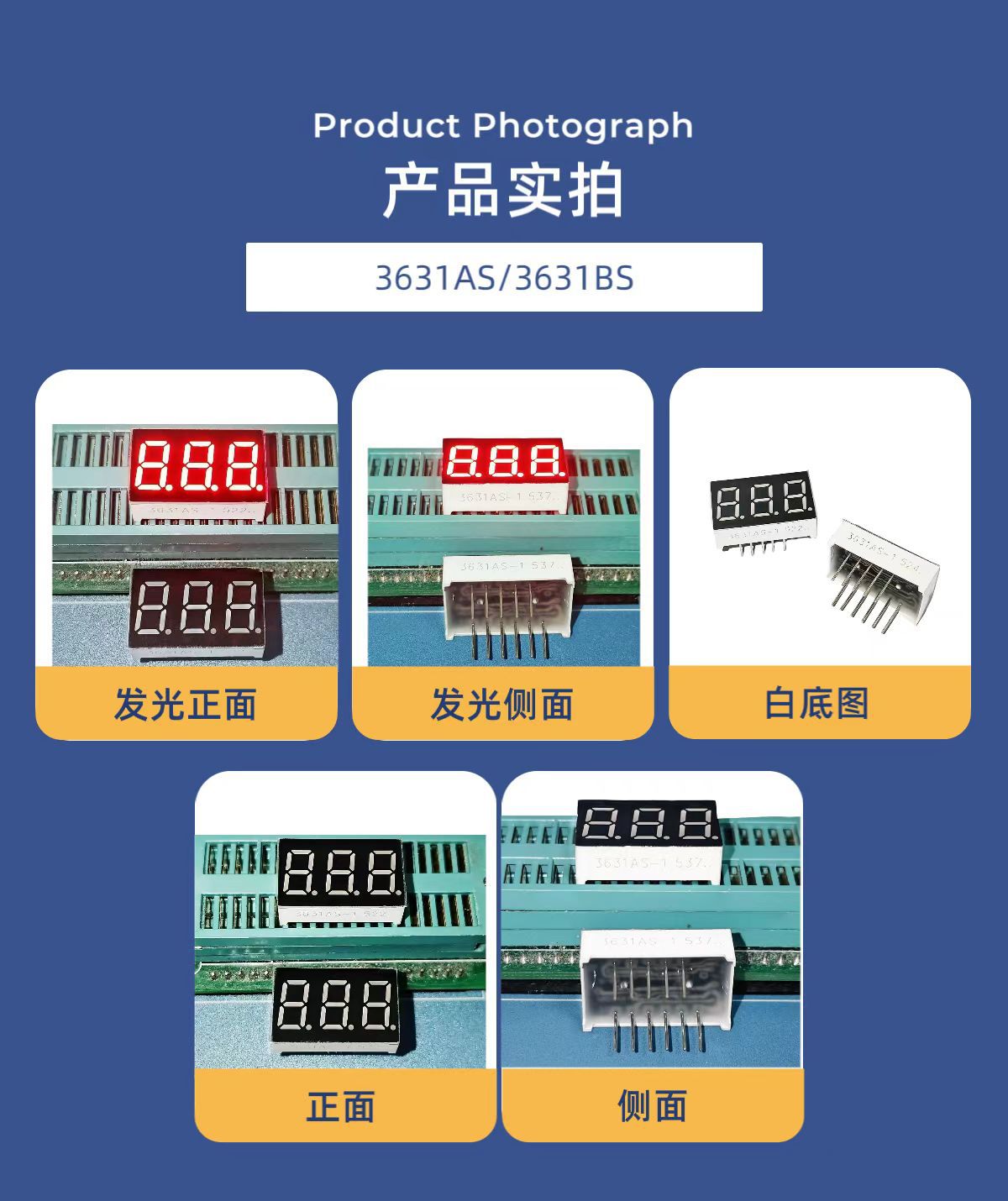 Прямая поставка с завода 0,36-дюймовая 3-значная светодиодная цифровая трубка ярко-красного цвета 3631BS co-Yang/3631AS co-yin