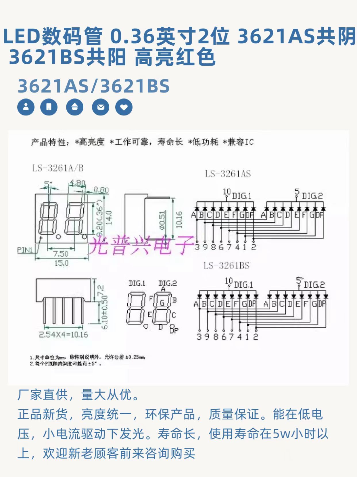 Прямая поставка с завода 0,36-дюймовая 2-Дюймовая светодиодная цифровая трубка ярко-красного цвета 3621AS co-yin/3621BS co-Yang