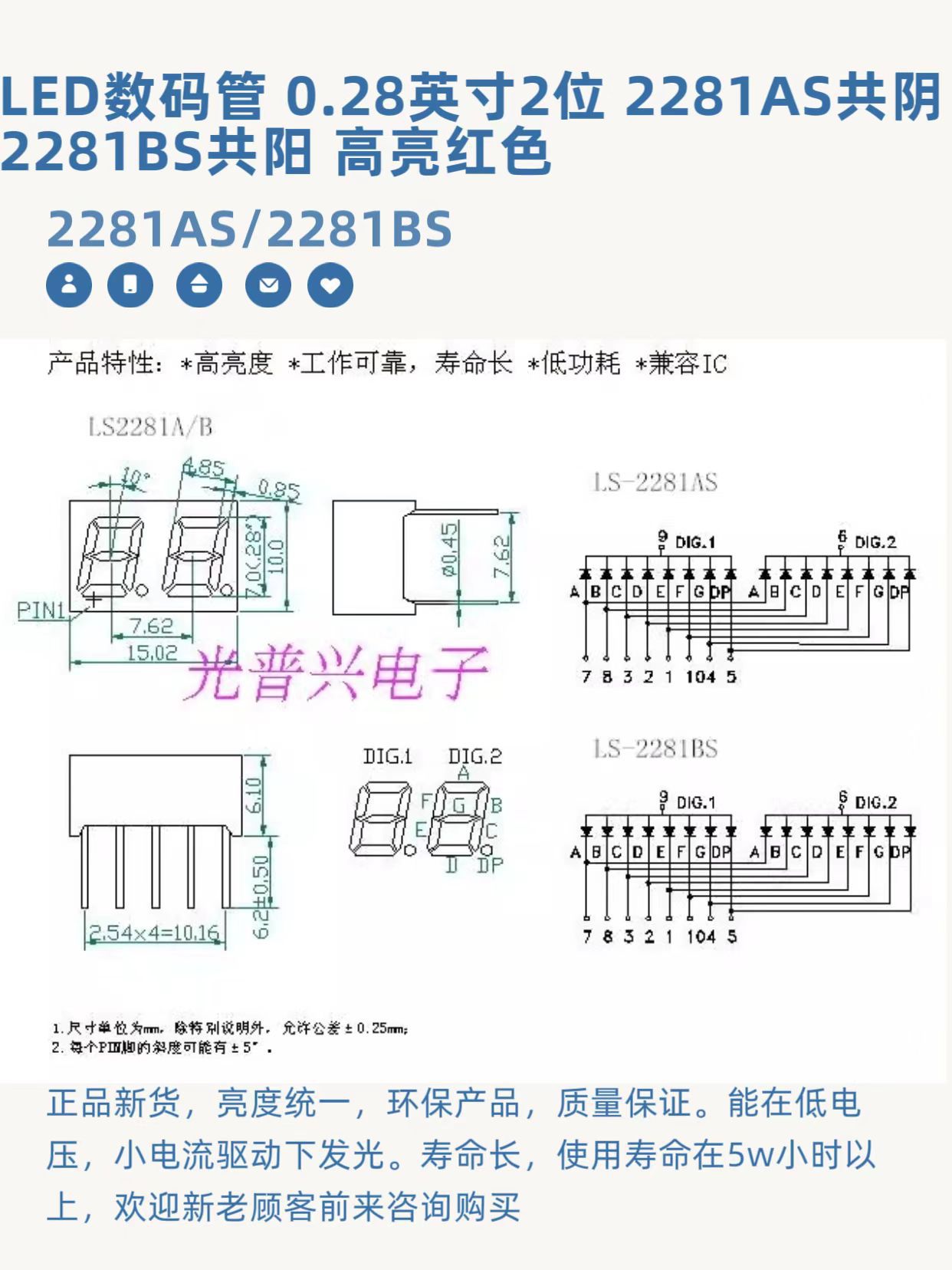 Прямая поставка с фабрики 0,28-дюймовая 2-разрядная светодиодная цифровая трубка 2821AS, всего Инь 2281BS, всего Ян, ярко-красный