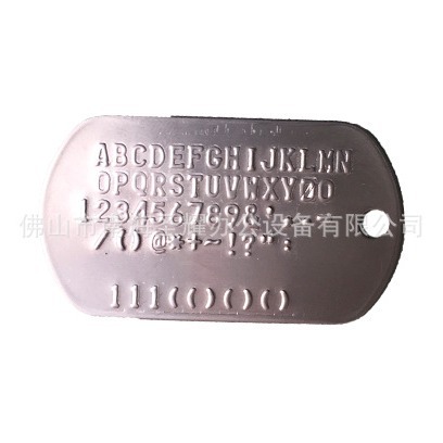 狗牌凸字打码机(压印机)是身份标识牌、狗牌制作加工的常用设备。功能就是在空白金属身份标识牌、狗牌、军牌等金属表面上压出上凸的字码,使其具有可识别性,用这机器你可以制作个性化的牌子。