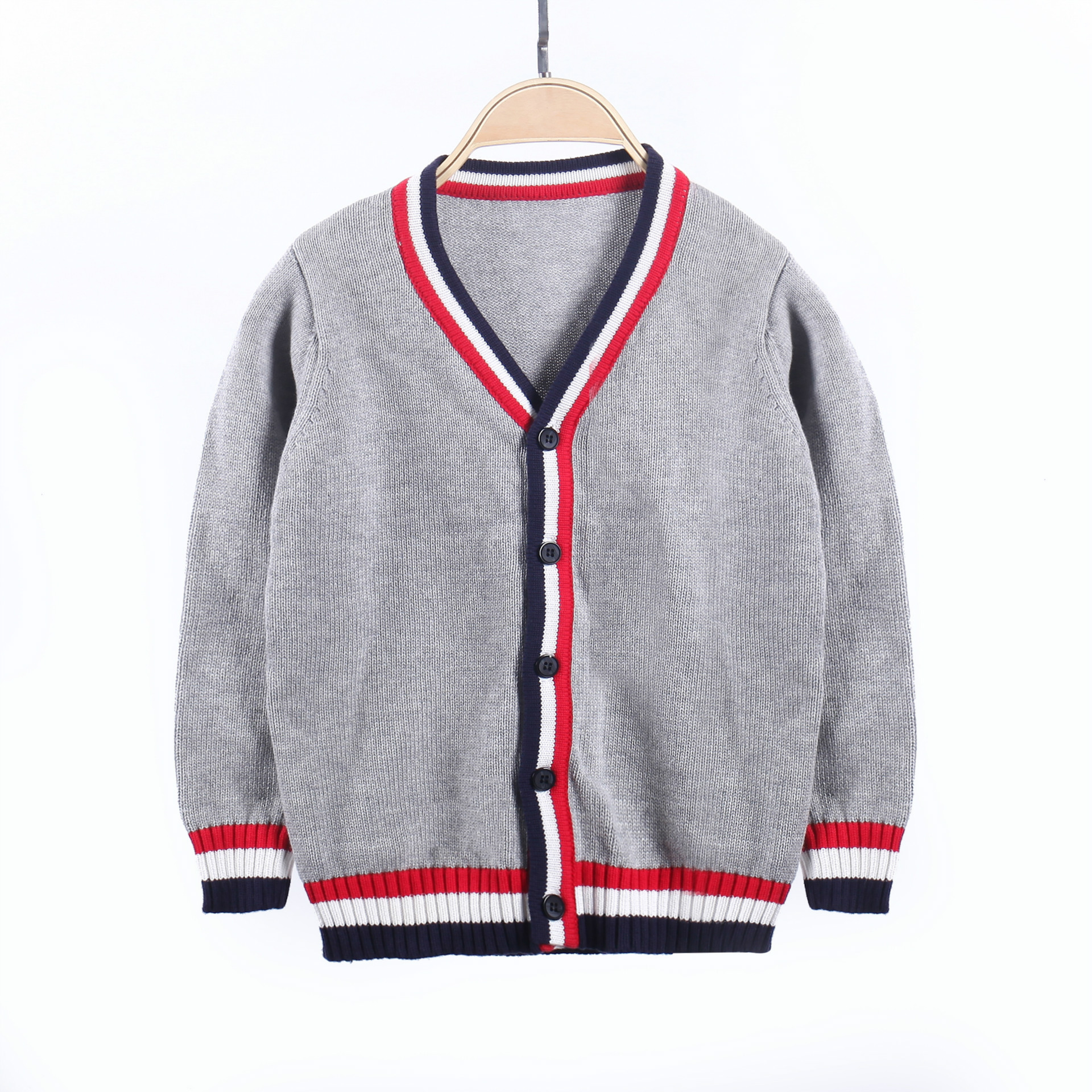 Одежда для детского сада Англия Колледж Детская V-образным вырезом в полоску Студенческая форма Трикотажная одежда Кардиган с длинным рукавом Свитер из 100 хлопка