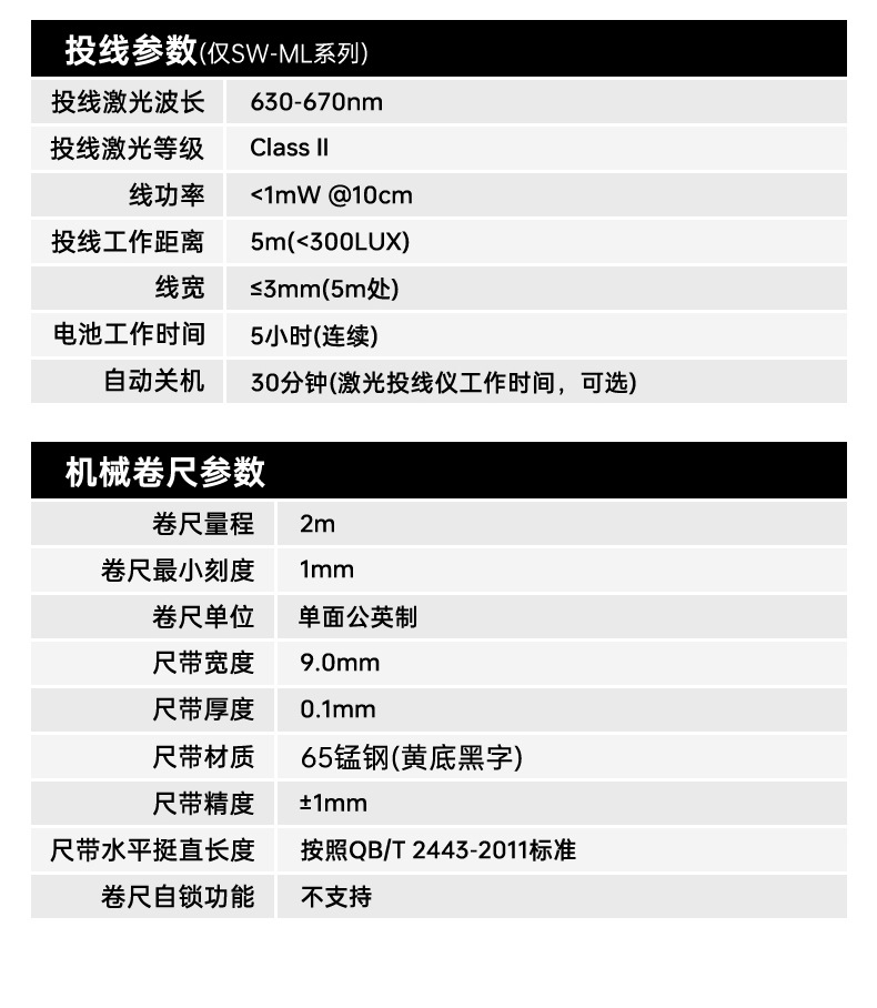 SW-M50A系列陆续升级,新旧款区别:增加2米卷尺+其他功能