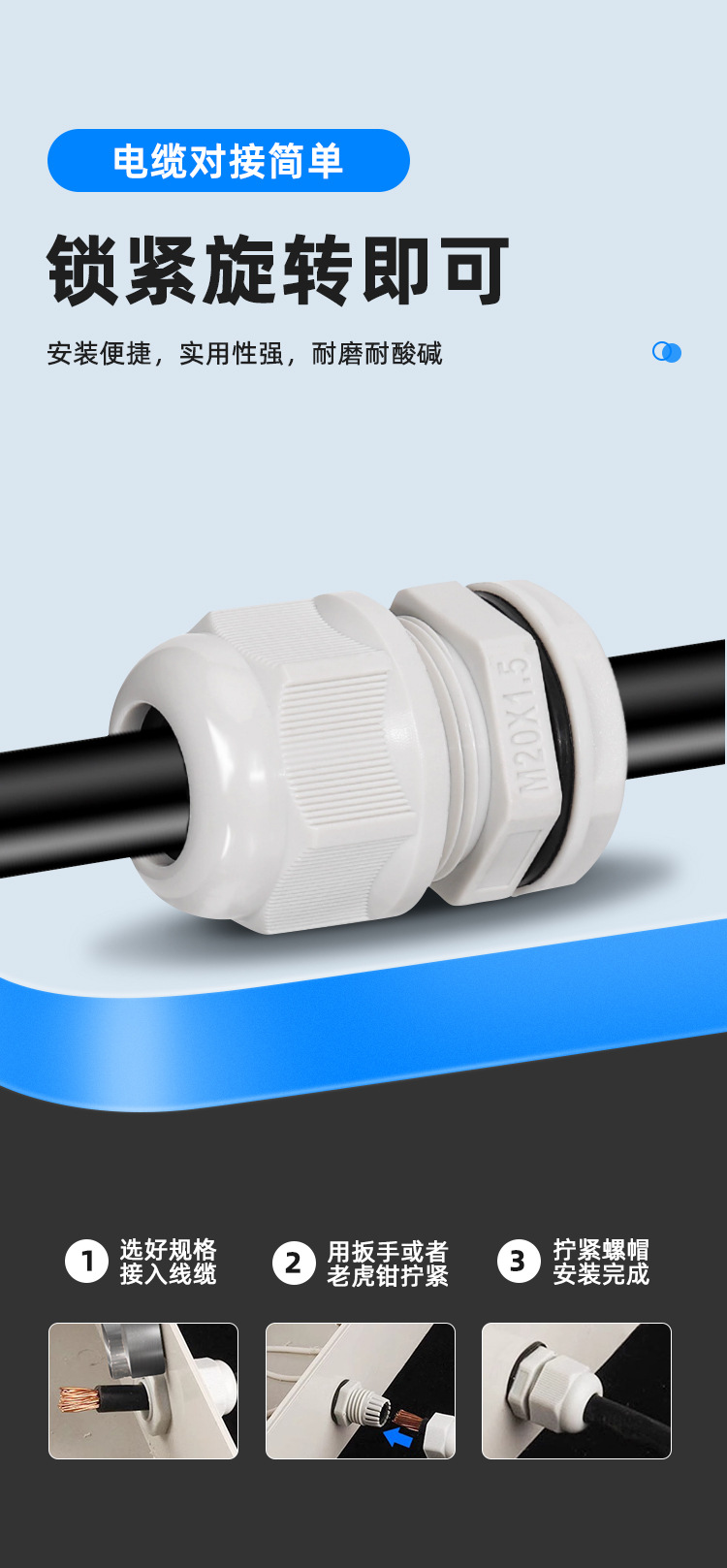 Нейлоновый водонепроницаемый соединительный кабель, соединительный кабель Galan, фиксированный кабель головки Galanz типа PG/M, немецкая метрическая головка