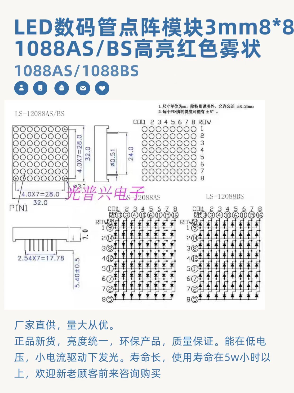 Завод прямых поставок СВЕТОДИОДНЫЙ матричный экран 3 мм8*8 красный выделить 1088AS всего Инь 1088BS всего Ян дисплей
