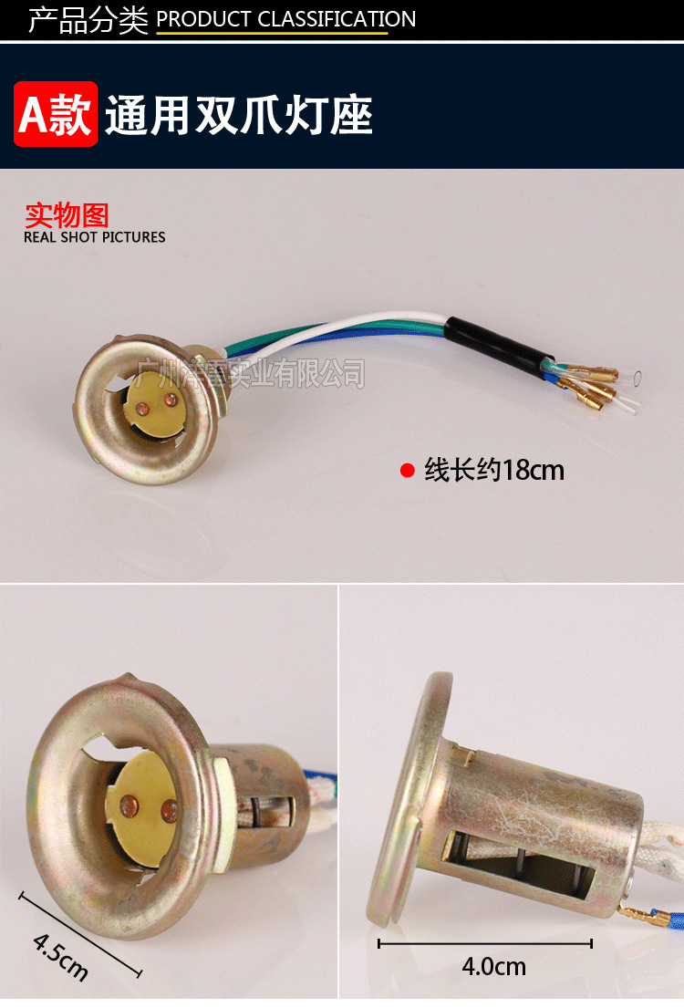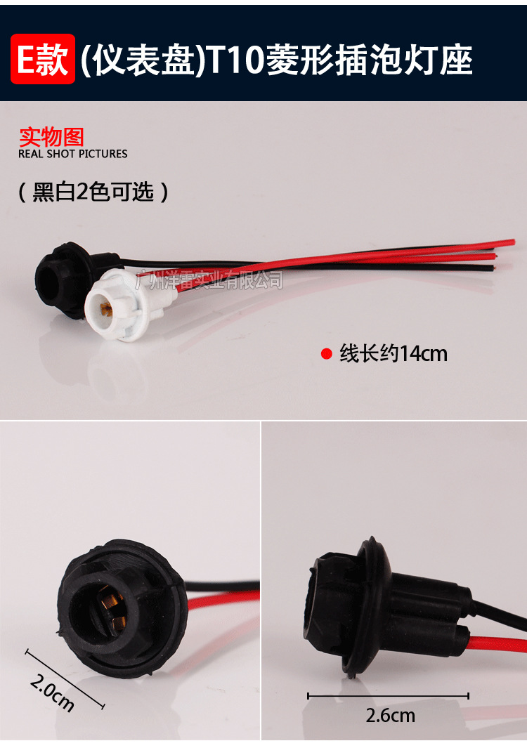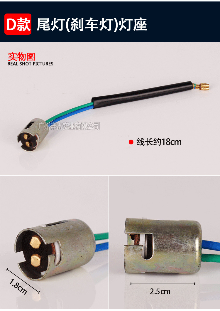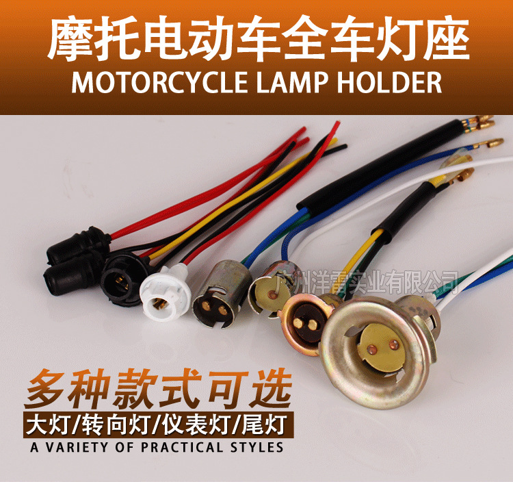 Держатель лампы с двойным когтем фары; Держатель лампы для фары с одним когтем B; C держатель лампы рулевого колеса; Держатель лампы тормозной лампы D (высокие и низкие ножки) две линии; E T10 Алмазная головка черная головка; Гнездо диаманта Э Т10 Белая голова (линия цвет случайный); F T 10 круглая розетка; G налобный керамический патрон с тремя когтями; Держатель тормозной лампы (верхняя и нижняя ножка) трехпроводной