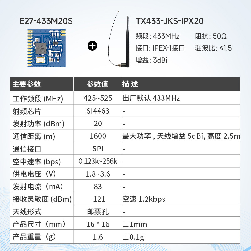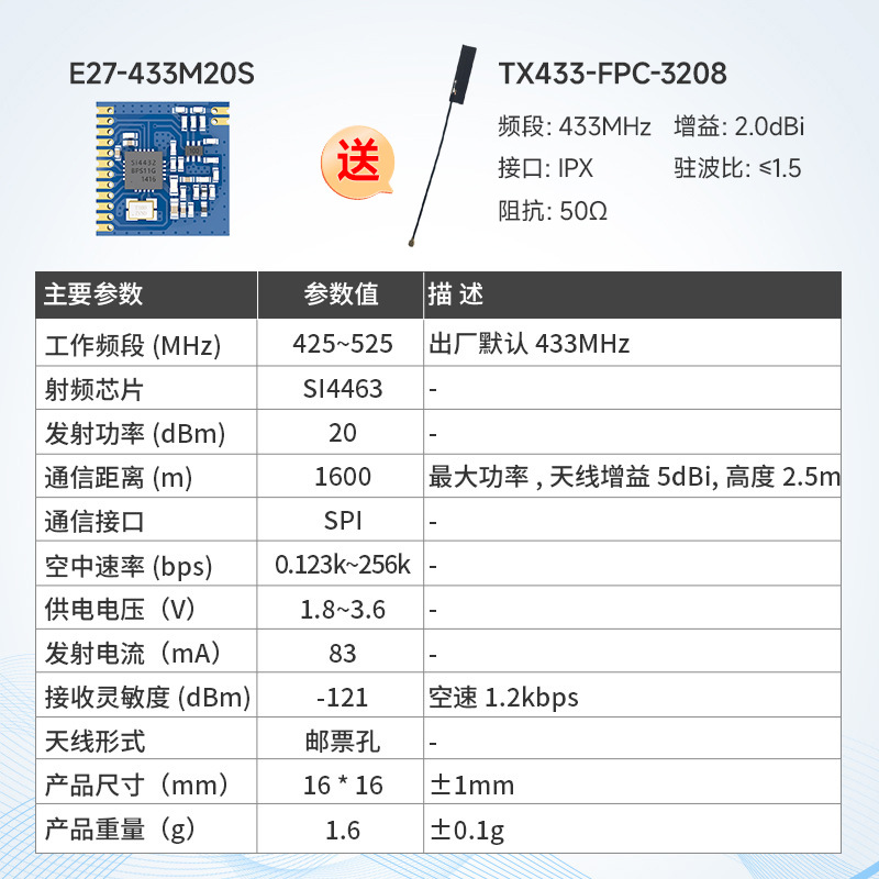 E27-433M20S [Бесплатная антенна FPC]; E27-433M20S [Оснащен антенной с клеевым креплением]