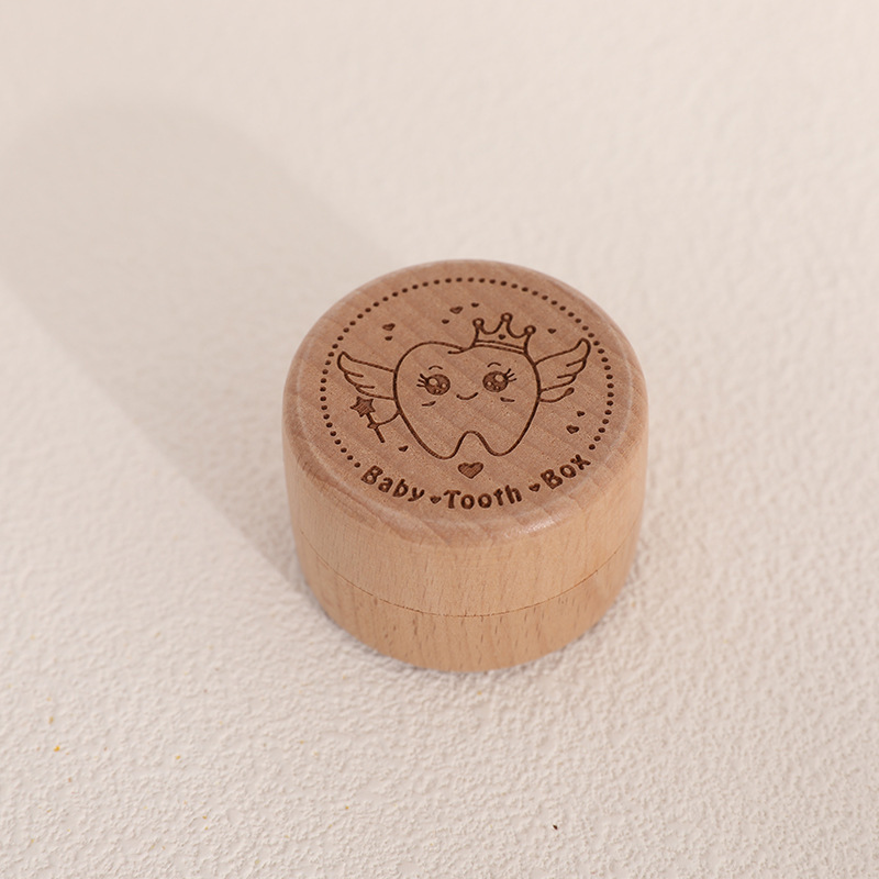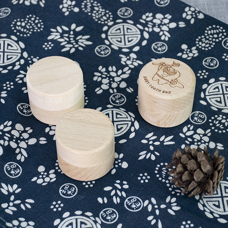Деревянная шкатулка для детских молочных зубов из бука, коробка для хранения зубов, для сбора волос плода, с круглой крышкой на защелке, подарочная коробка для малыша, трансграничная торговля