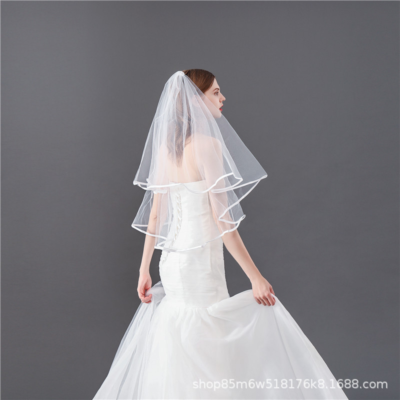 Специальная оптовая продажа свадебной пряжи для новобрачных, простая двухслойная лента с окантовкой в стиле летучей мыши, Заводской магазин
