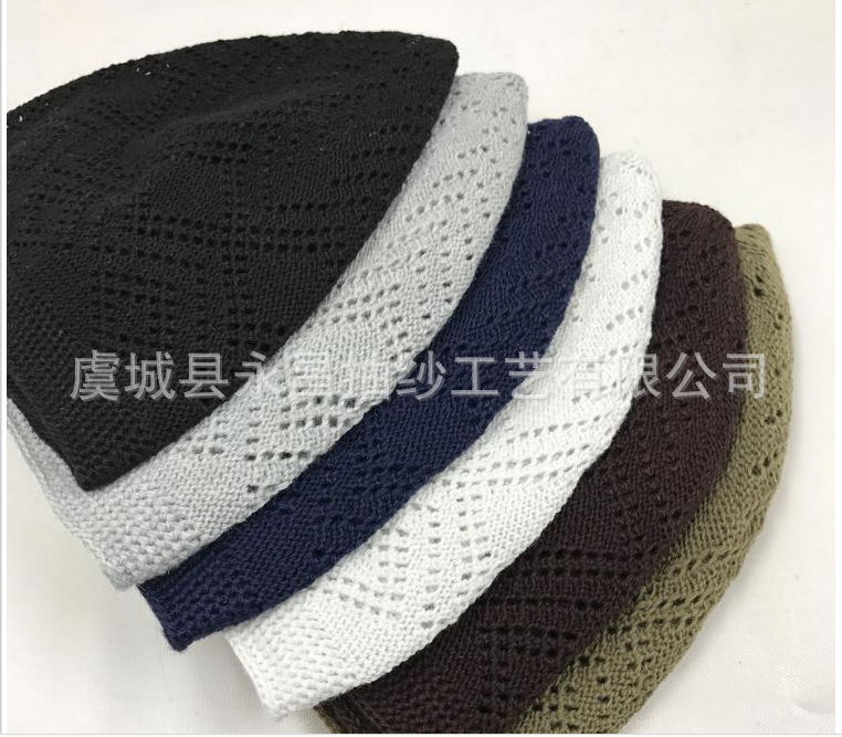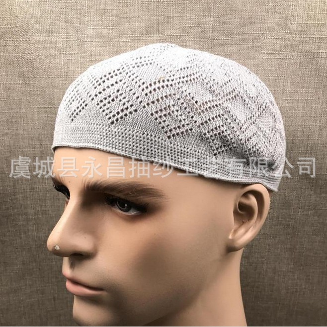muslim caps 穆斯林民族帽 ,这款伊斯兰教帽子适合穆斯林佩戴,针织帽子象征着纯洁与虔诚。虞城县永昌抽纱工艺有限公司始建于1993年,是一家专业生产伊斯兰服饰用品的生产企业。现有员工1万余人主要生产手工钩针帽、电脑绣花帽、沙特帽、朝拜毯、阿拉伯大袍,各种男女式头巾等系类产品。