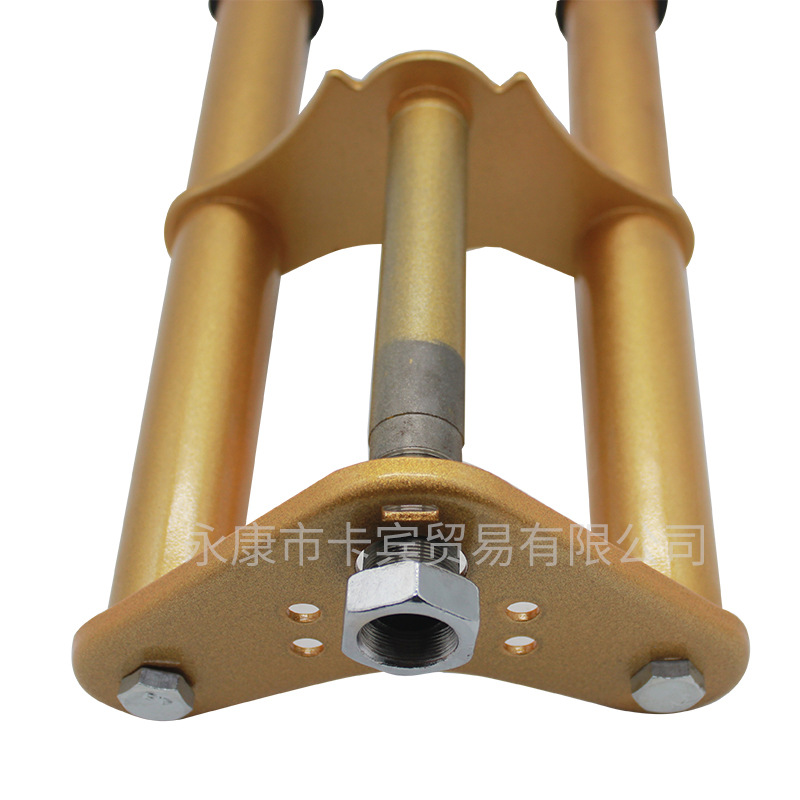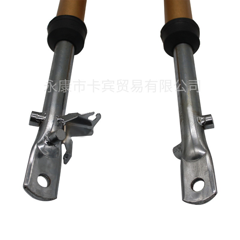 越野摩托车车前叉,重3千克,铁,表面喷漆处理。