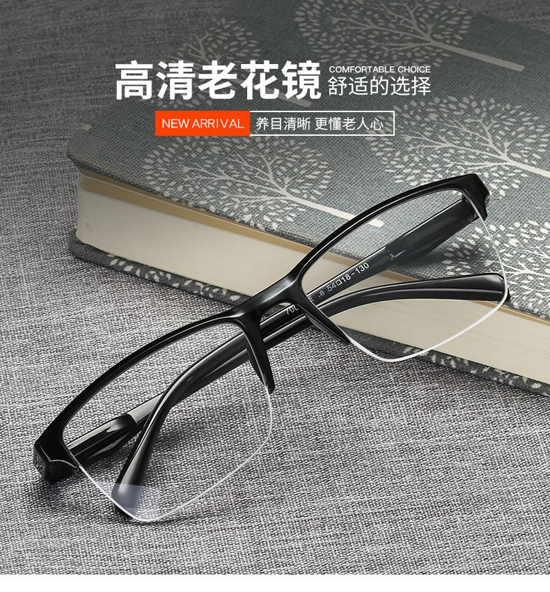 Трансграничная 2025 г., новая полуоправа, сверхлегкая подвесная проволока из смолы, прямые продажи с фабрики, большая оправа, специальная цена, унисекс, черные очки для чтения
