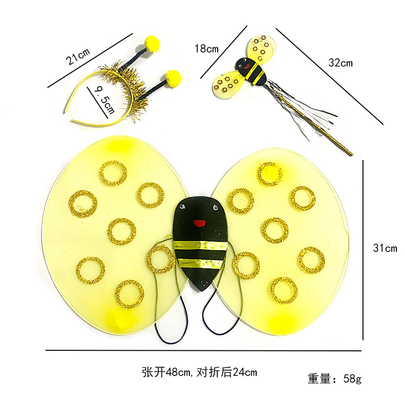 Костюм для выступлений на Хэллоуин и 1 июня: Набор из четырех предметов — Крылья пчелы, Ангел, Божья коровка. Желтый сценический костюм, реквизит для выступлений.