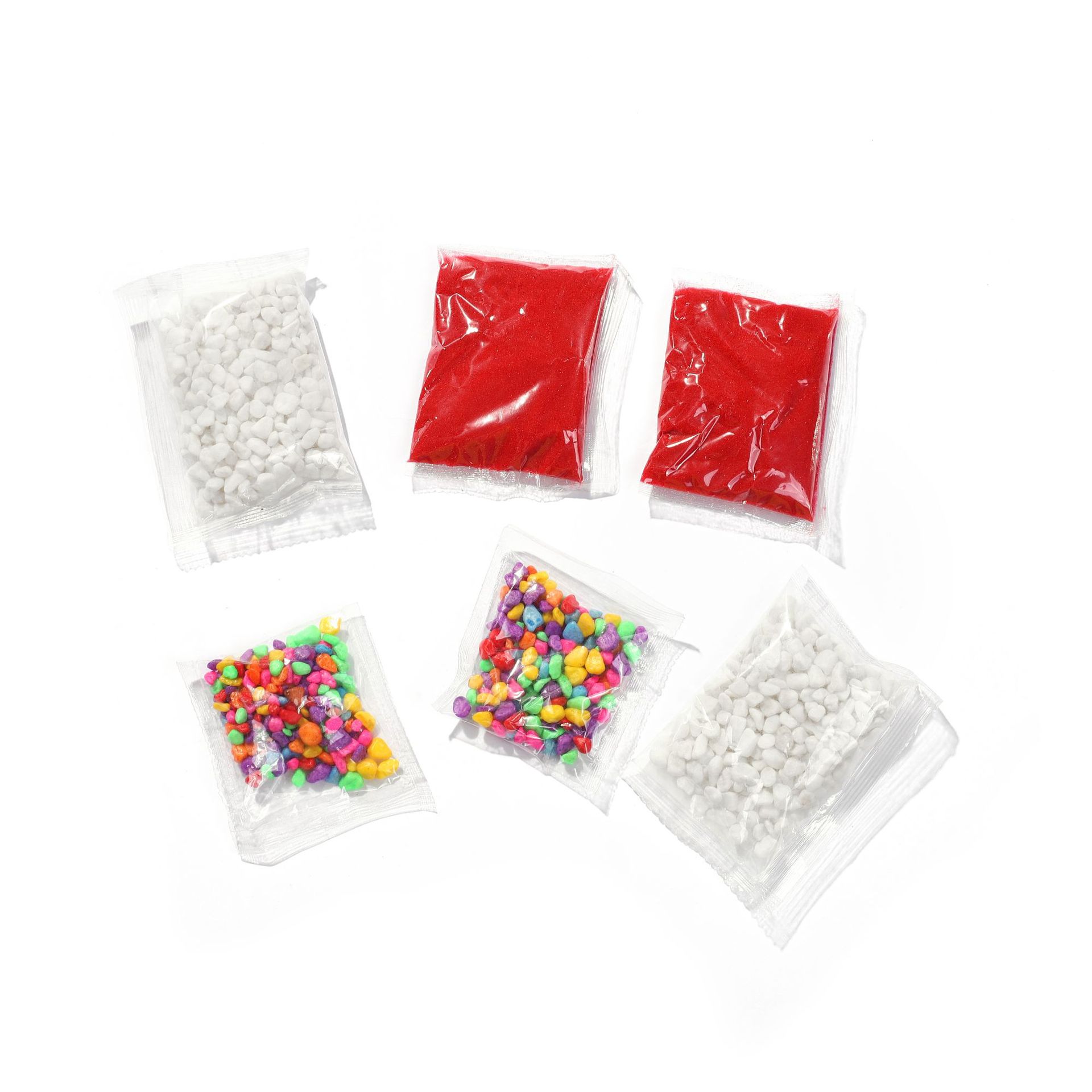 Прямые поставки от производителя: разноцветные мелкие пакетики с тонким цветным песком, окрашенные камешки, цветной песок в бутылках.