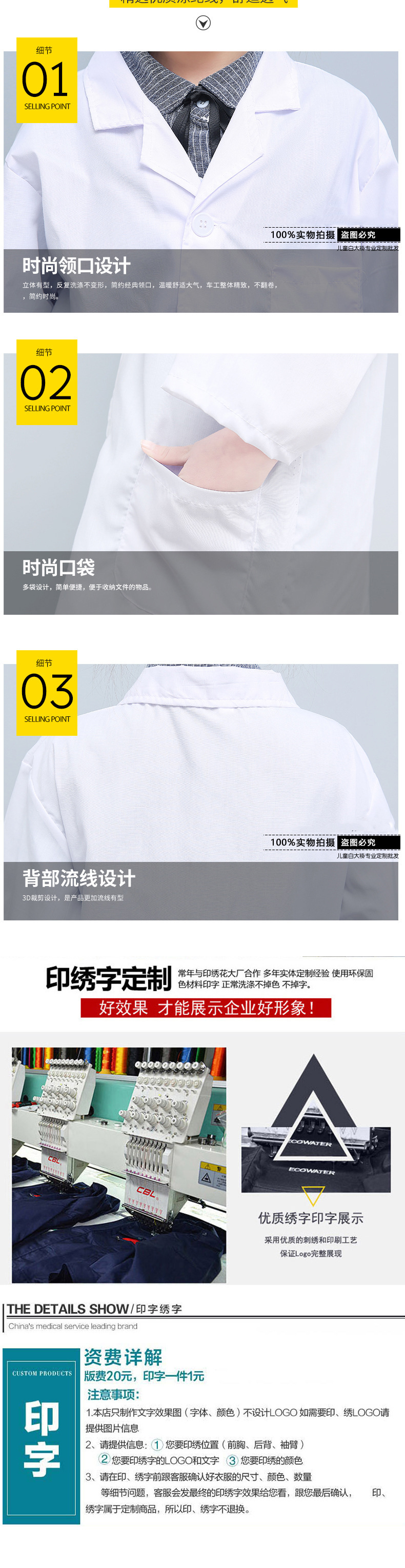 本厂专业批发定制儿童款白大褂实验服,欢迎各小学校幼儿科研单位采购!支持定制