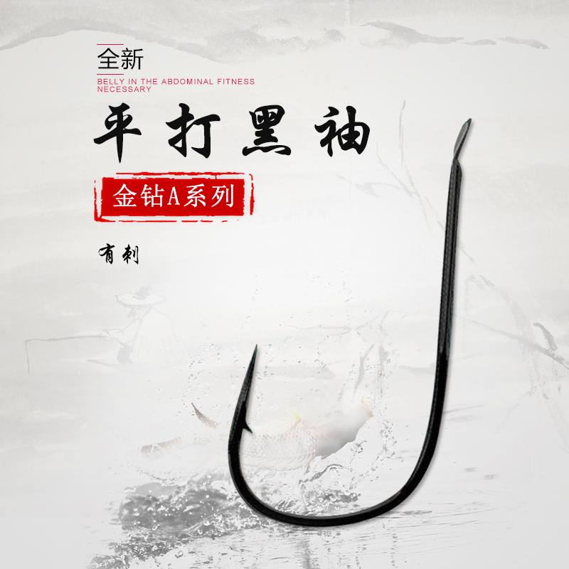 袖:此钩型无倒刺。钩尖锋利,钩柄长,钩条细钩身轻,适用于吸入取食的小型鱼种,快钓快取,多用于钓白鲫、小白条等。