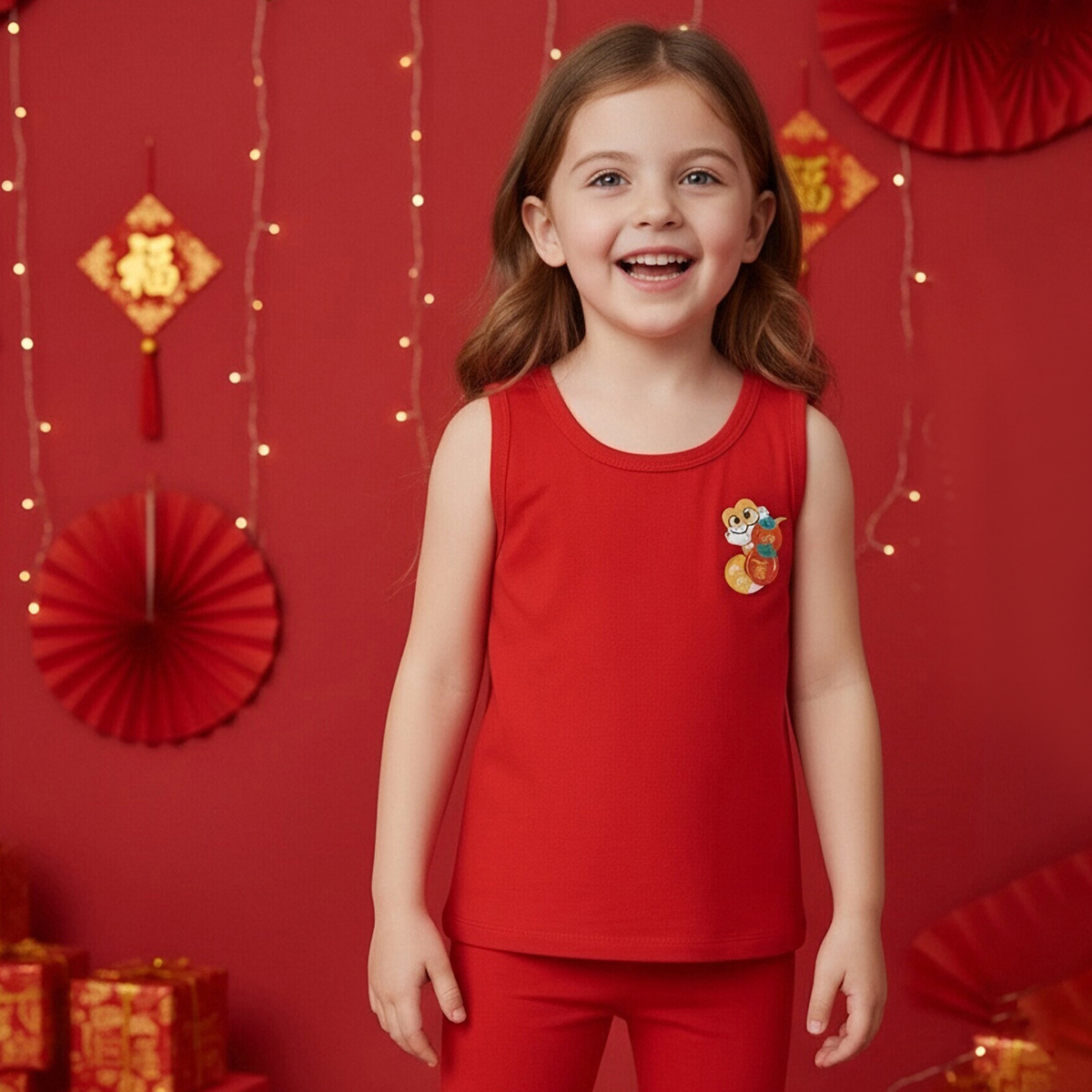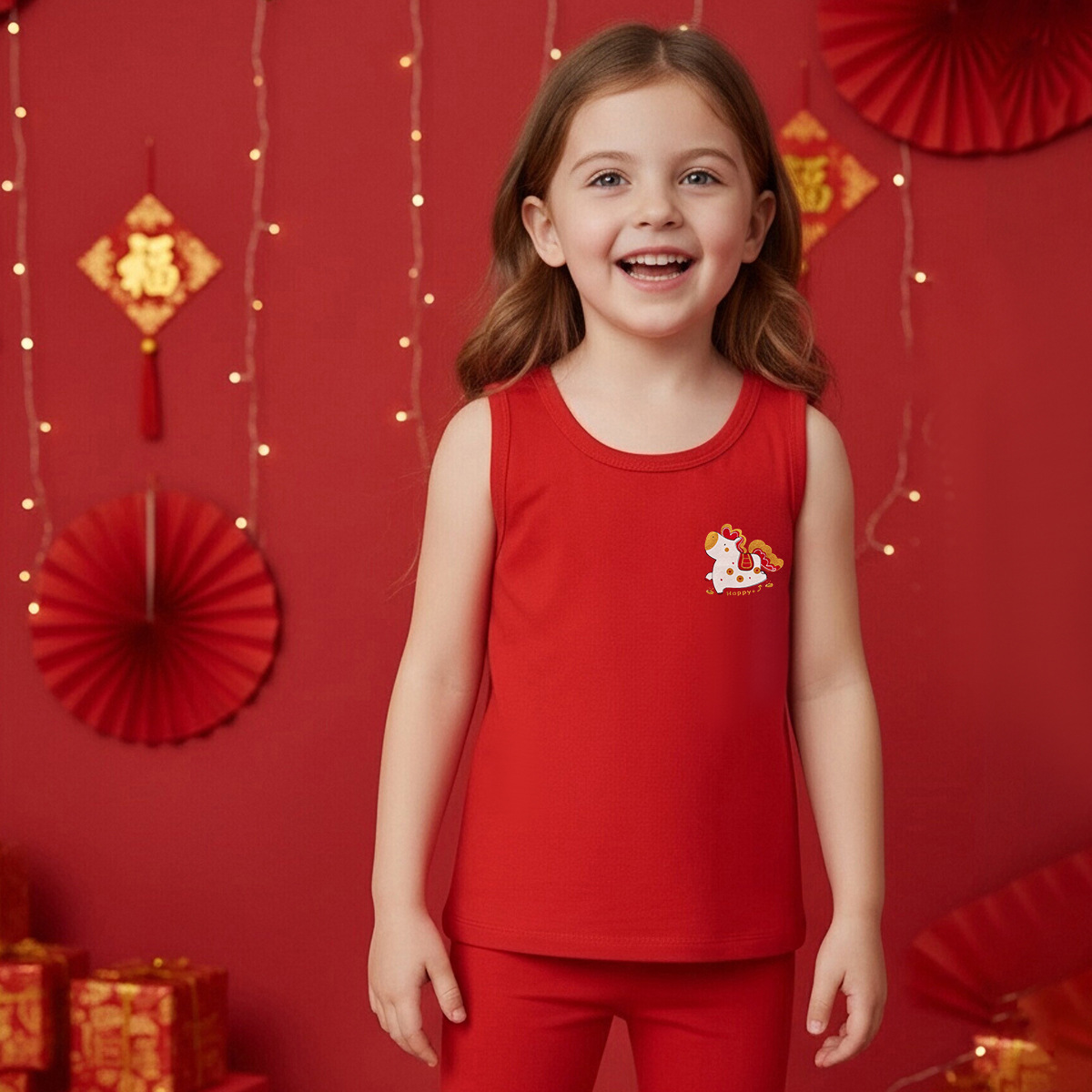 Детский жилет на год Лошади, красный, новогодний наряд для девочек постарше, майка-жилетка на год Лошади, красный жилет