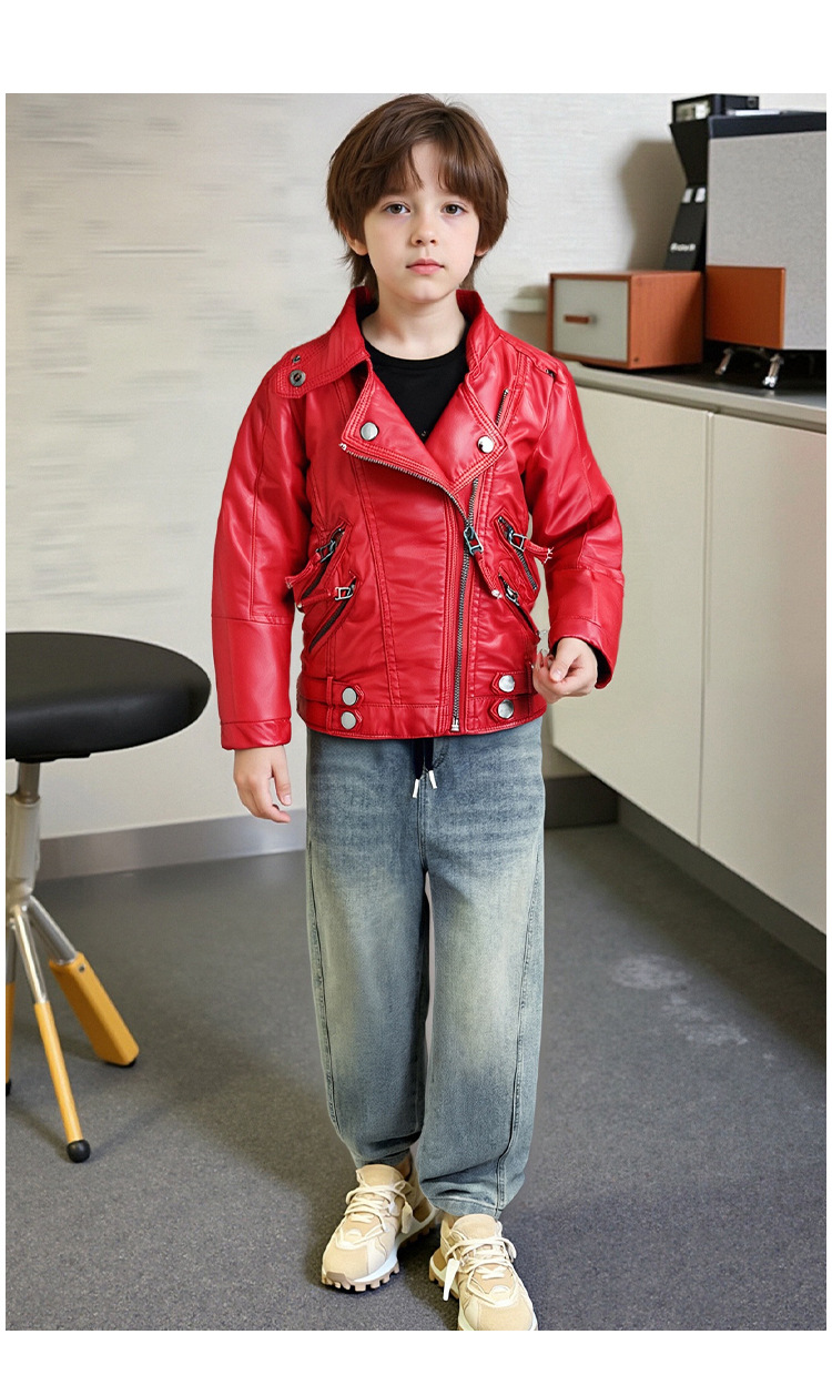Детская кожаная одежда, новинка 2025 года, детская одежда, куртка в стиле k, куртка из искусственной кожи для мальчиков и девочек, воротник-стойка, производитель детской кожаной одежды, готовый запас
