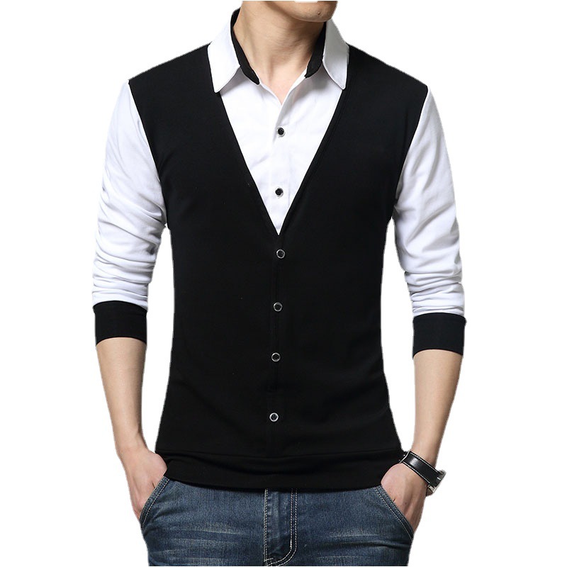 Мужская футболка с воротником 2024, мужская футболка с длинным рукавом больших размеров, базовая мужская футболка в корейском стиле, мужская одежда с длинным рукавом
