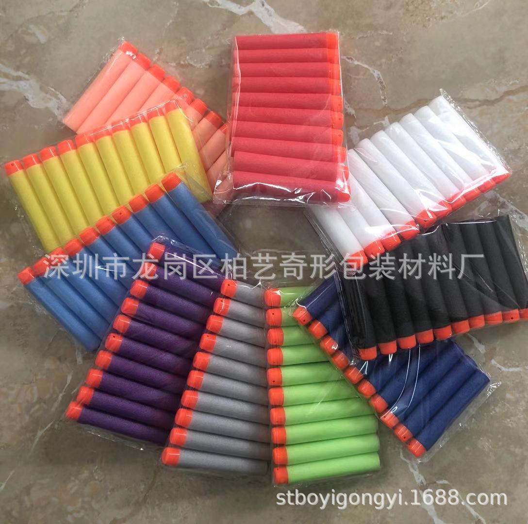 电动手动各品牌软弹枪通用泡沫海绵EVA子弹 战队精英软弹 10发装,各种规格颜色 按客户要求定做厂家自产自销,没有中间利润,欢迎亲们来电或旺旺上详谈。本厂以质量为主,亲们大可放心采购,真正做到物美价廉。各位亲下单时请备注颜色和头,没有备注的我们发深蓝色空心头子弹。