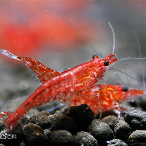樱桃虾又名火焰、樱花虾、玫瑰虾(与阿拉斯加玫瑰虾是不同品种)。樱桃虾分布于中国台湾地区,以及其他一些东南亚国家。因为体形小,没有带攻击性与破坏性的螯足,食性上属于混合食性,因此,养在草缸里,不会伤害其他生物,还可以清除食物残渣,对水草上附着的藻类做细致的清洁工作。樱桃虾成虾体长大约2厘米,水质要求pH7左右,水温22~26度,繁殖方式属于大卵型,樱桃虾因为属于大型卵,因此繁殖还是比较容易的,不象小卵型的大和藻虾,繁殖过程需要汽水环境,有一个降温的过程,色彩鲜艳、略透明, 在体内有卵时可以直接看到,其头胸甲、腹部和第三对步足有红白相间的条纹,并覆盖有棘突, 其触须和其他步足则都是白色的。