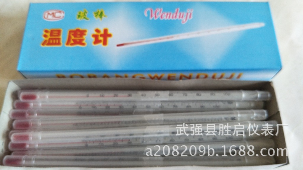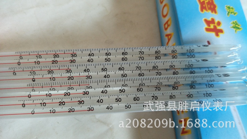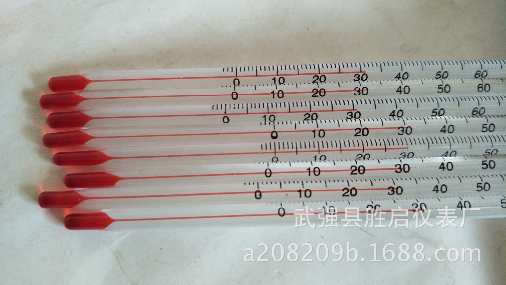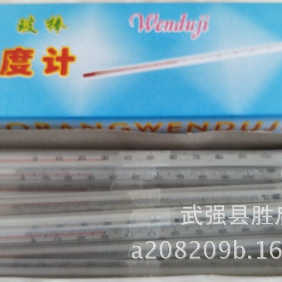 20厘米长红水温度计 0-100度 分度值1度