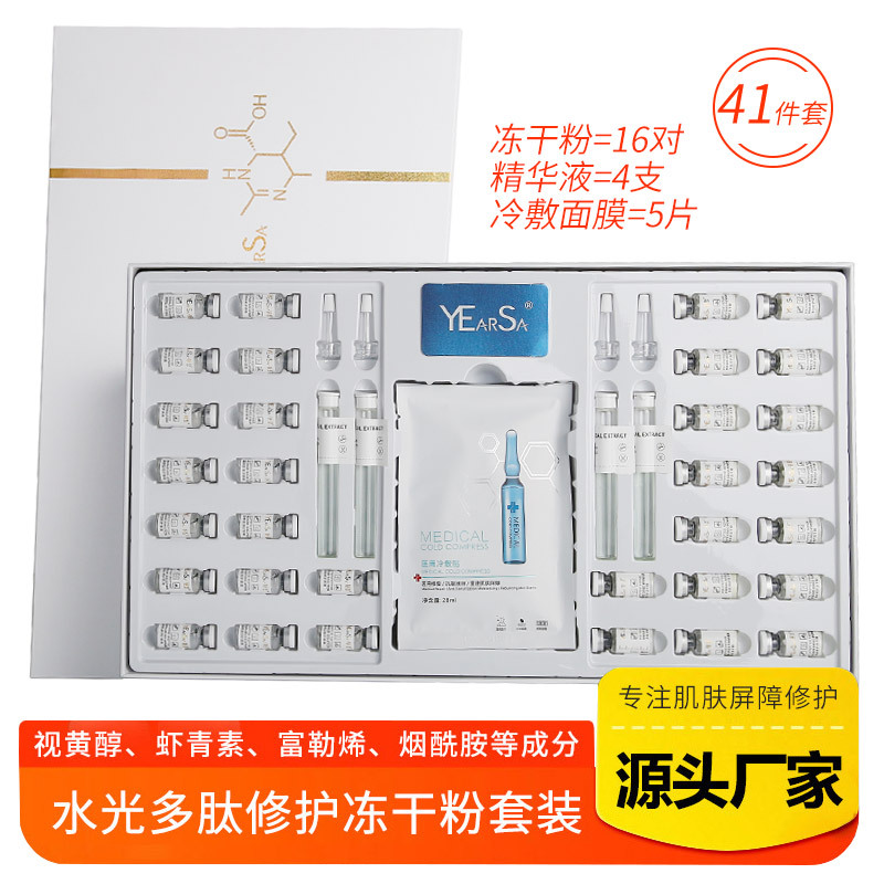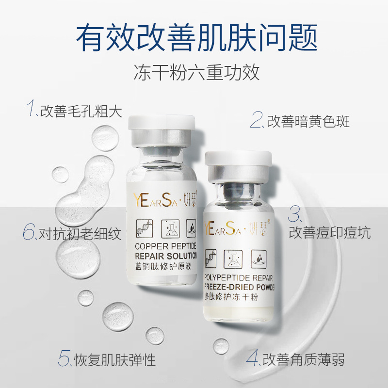 Замораживани-высушенный порошок коробка 45 частей (включая 5 масок); Питательный лиофилизированный порошок 5 мл * 5 пар/коробка; Красочный Замораживани-высушенный порошок 30 пар; Голубой медный пептид лиофилизовал пару порошка 5 мл * 5/бокс