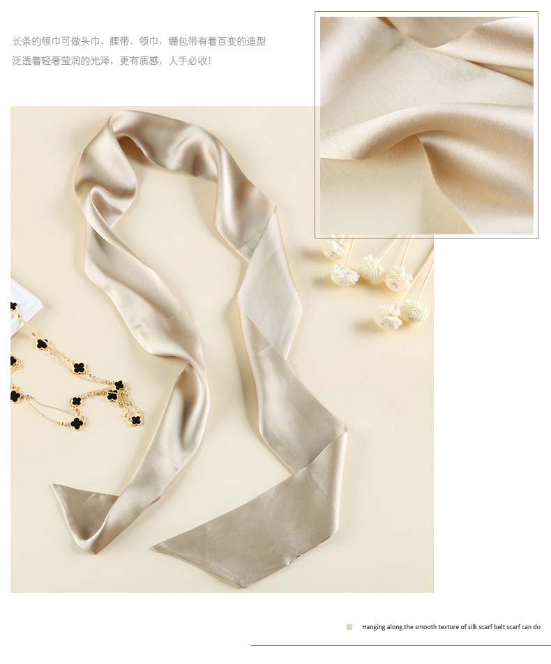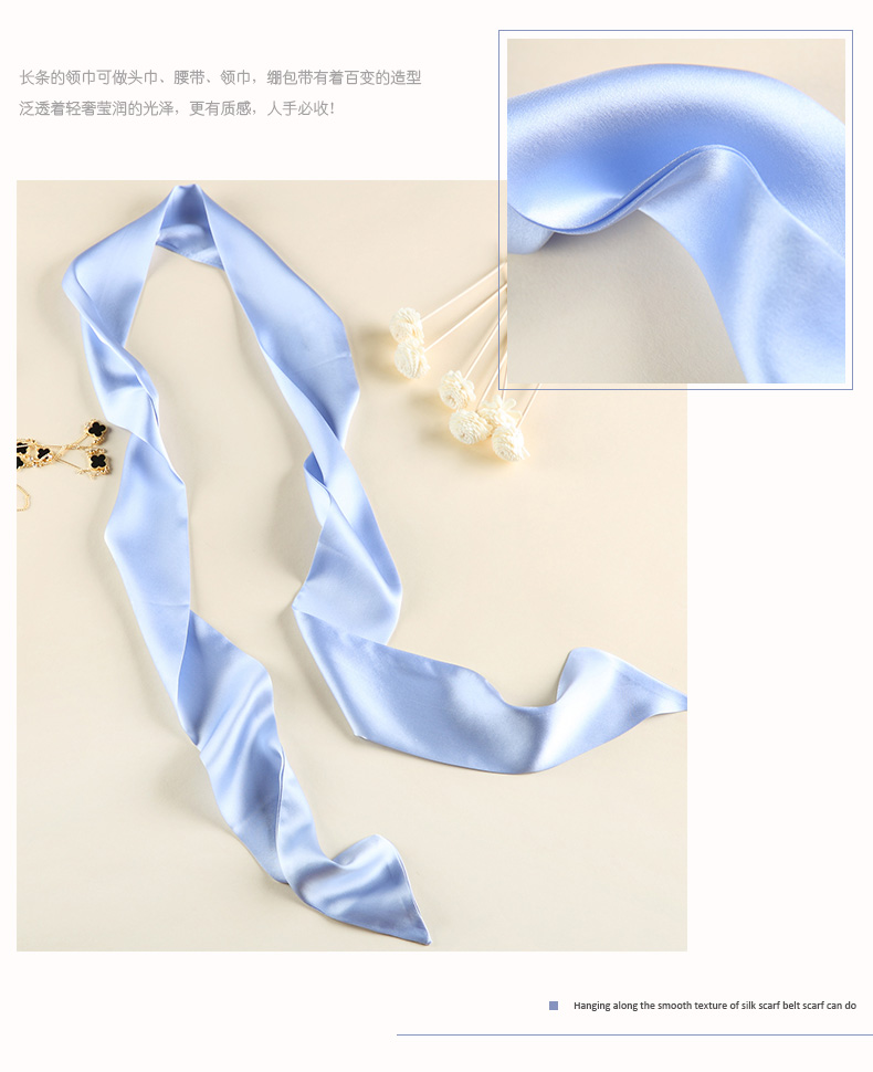小丝巾飘带女长款韩版窄丝巾长巾百搭纯色真丝领巾绑包包腰带