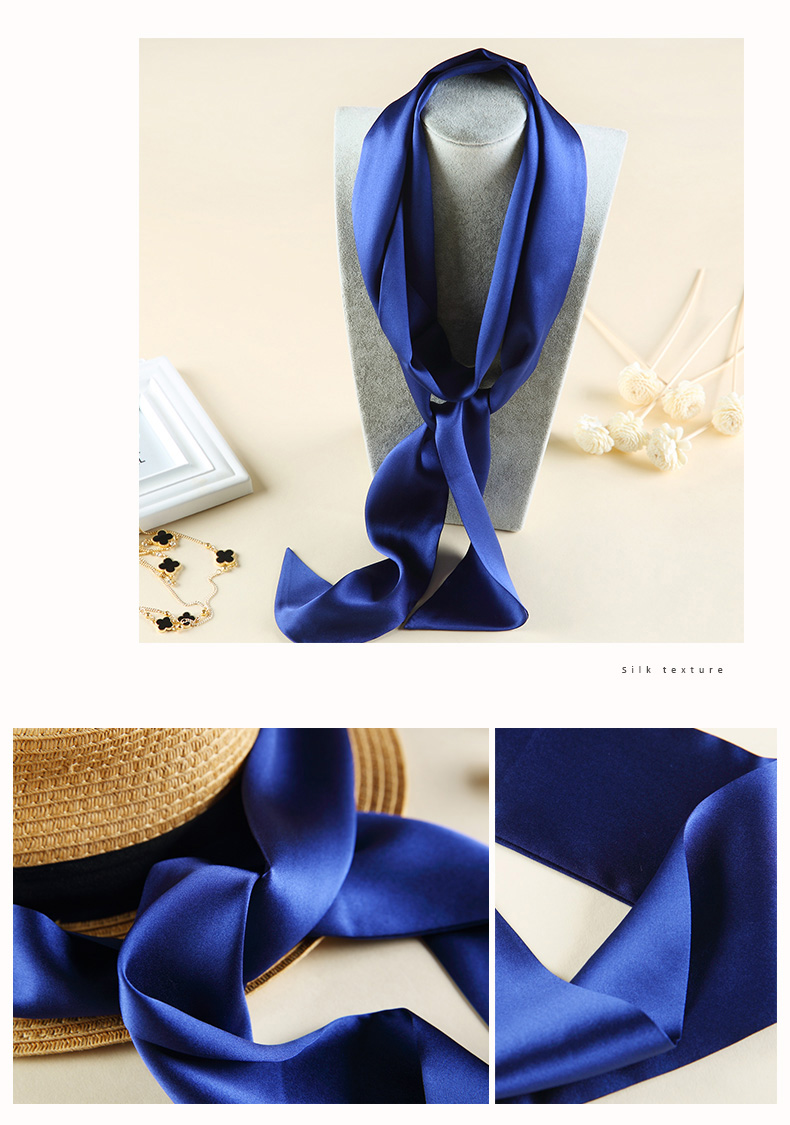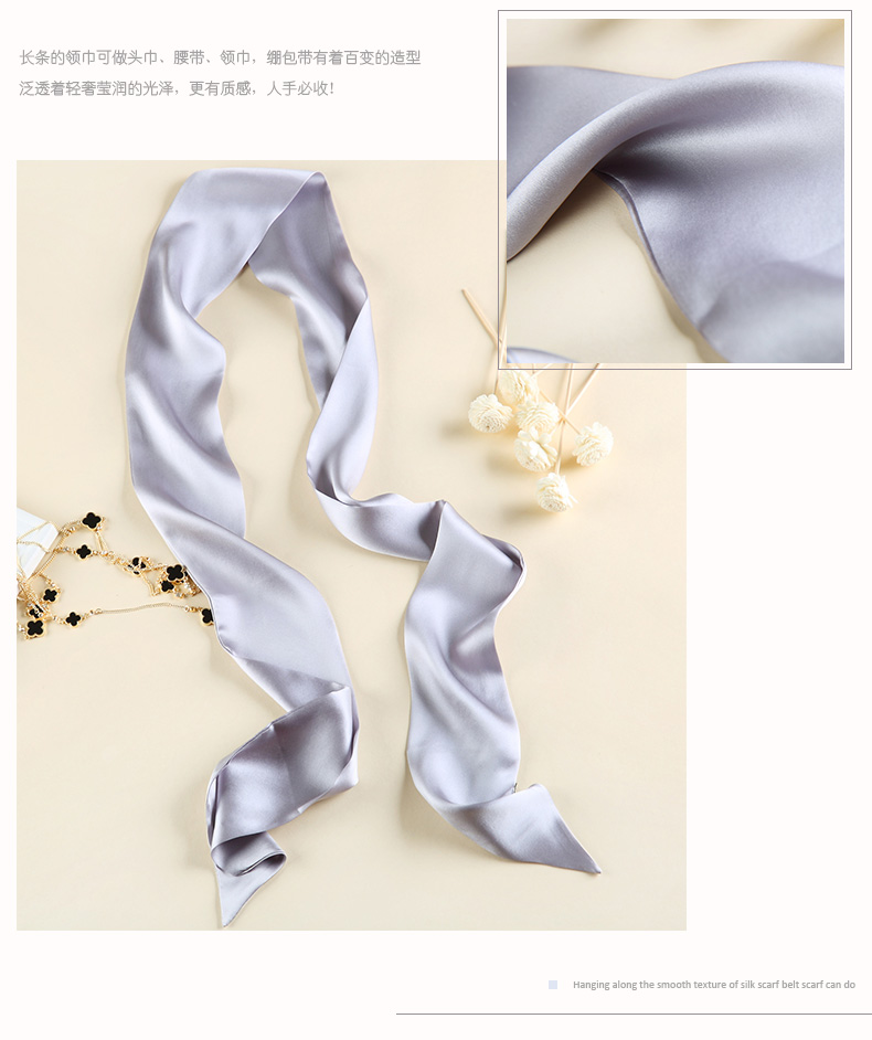 Маленький шелковый шарф с лентой, Женский Длинный Узкий Шелковый шарф в Корейском стиле, длинный шарф, Универсальный однотонный шелковый шарф, сумка для галстука, пояс