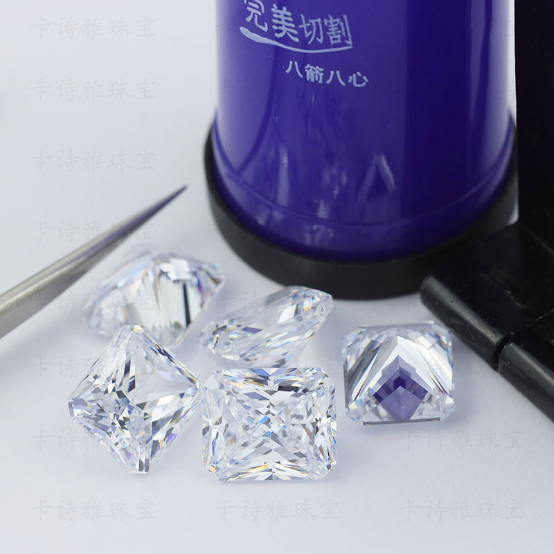 Оптовая продажа с фабрики искусственных драгоценных камней прямоугольная машина цветочная резка циркон ювелирные изделия с белым голым камнем