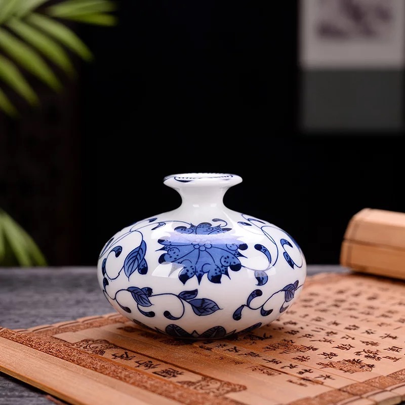 Ваза маленький рот Селадон керамические синие и белые фарфоровые бутылки украшения мини-Гидропонные винтажные Цветочные украшения чайная церемония маленькая Цветочная посуда