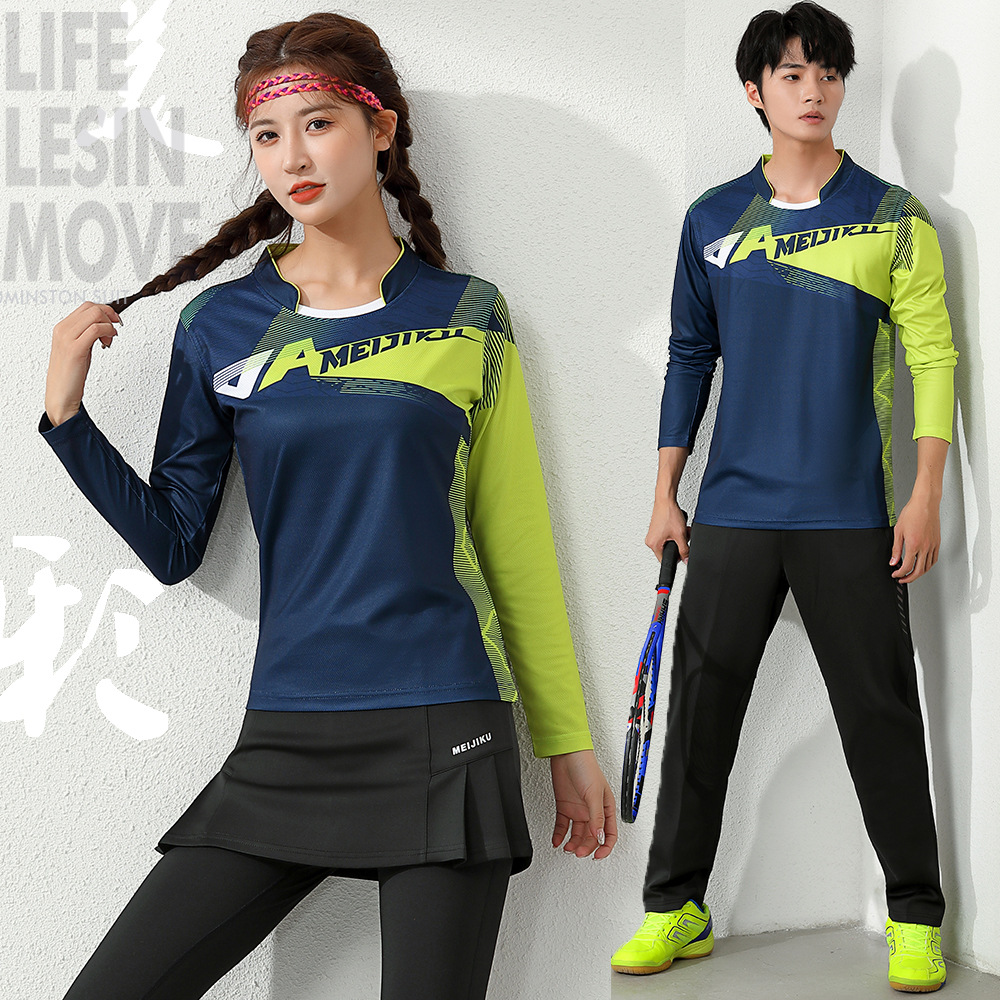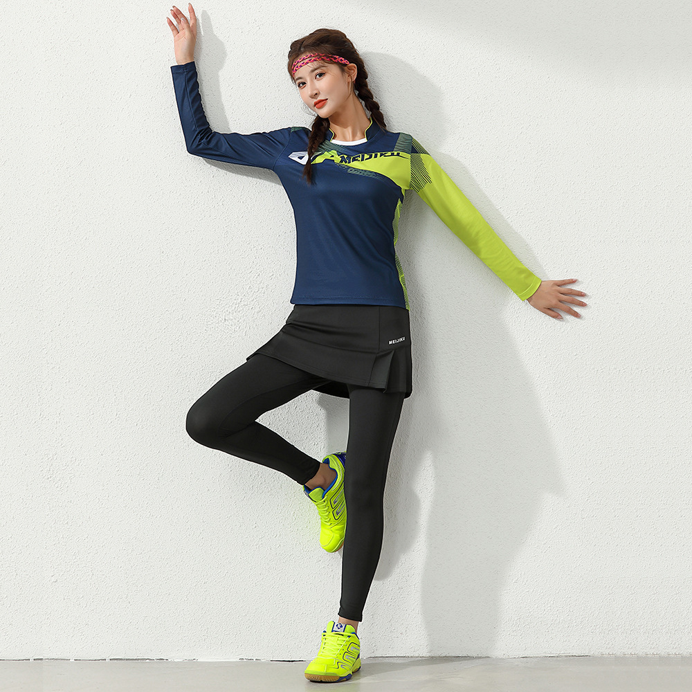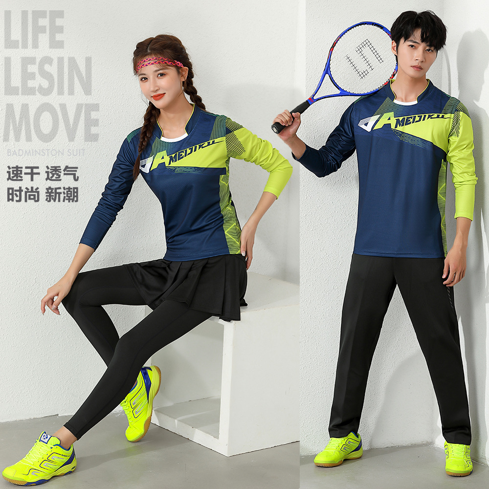 Новый Быстросохнущий костюм для настольного тенниса, осенне-зимний костюм для бадминтона, брюки с длинными рукавами, мужские и женские спортивные поддельные кюлоты из двух частей