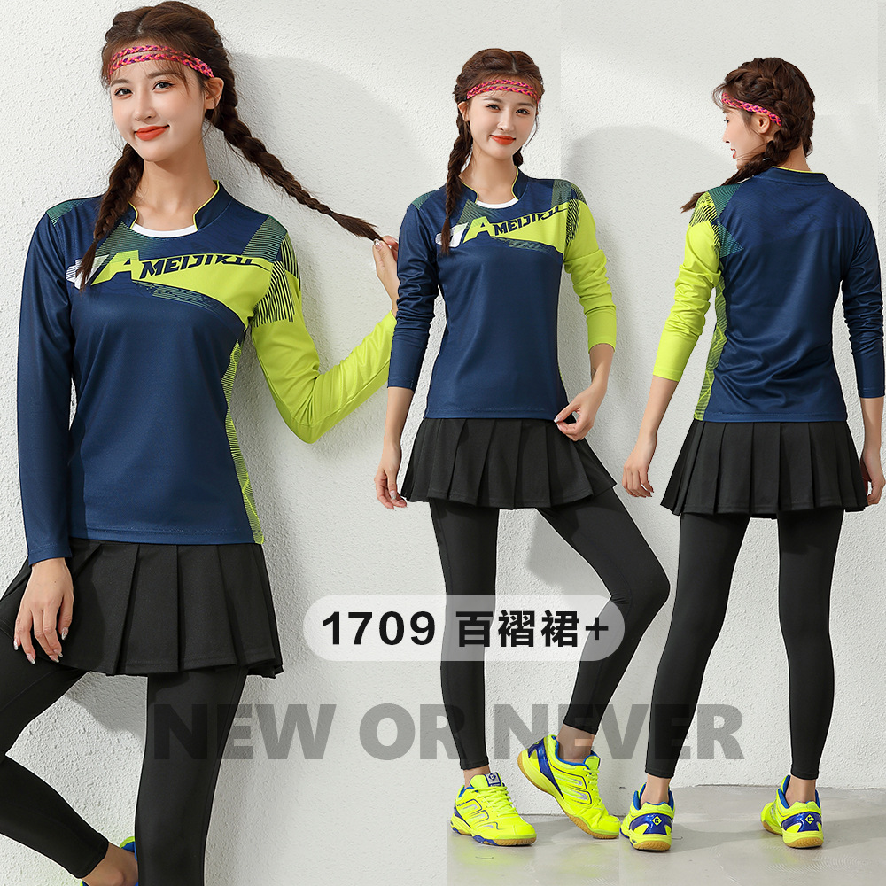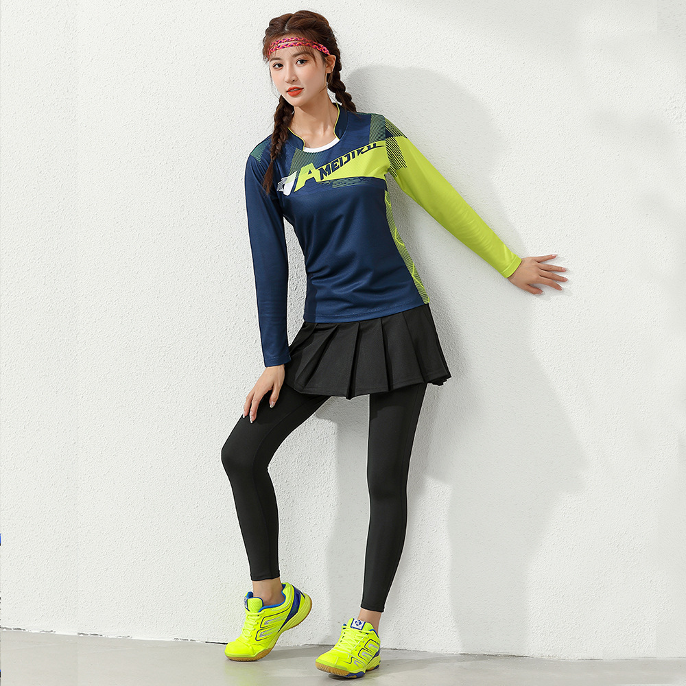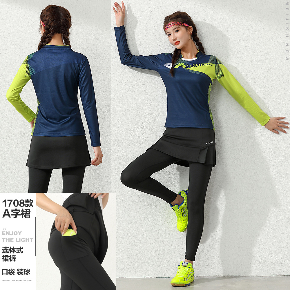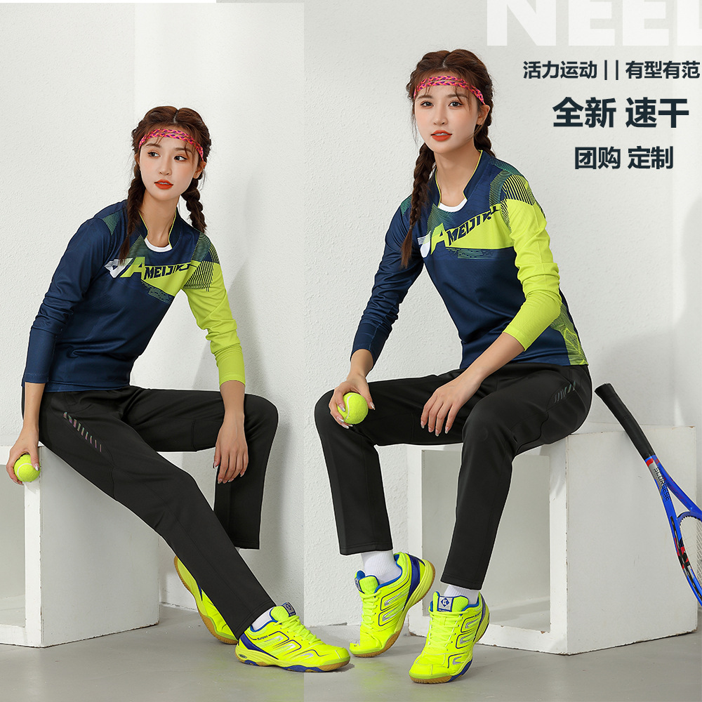 Новый Быстросохнущий костюм для настольного тенниса, осенне-зимний костюм для бадминтона, брюки с длинными рукавами, мужские и женские спортивные поддельные кюлоты из двух частей
