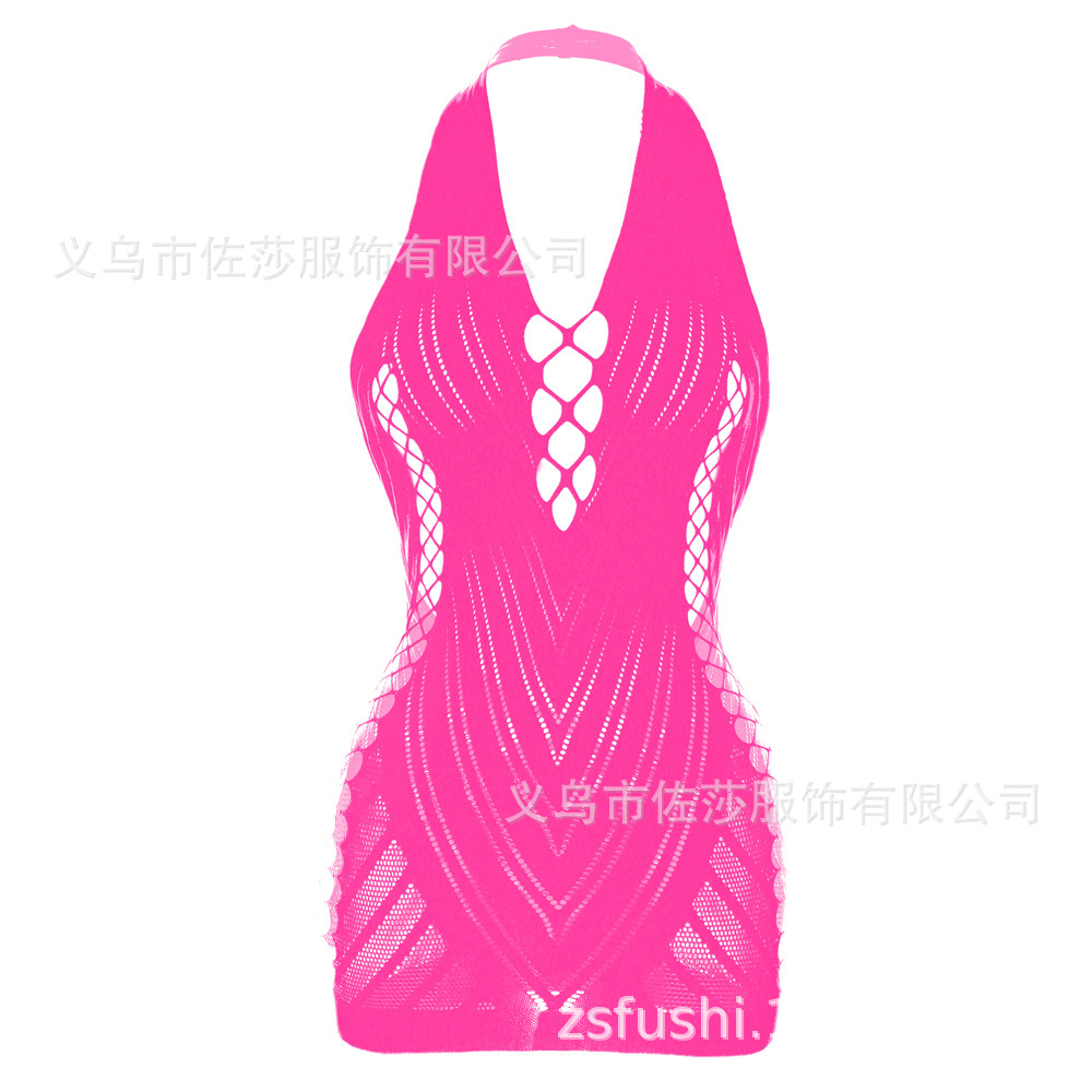 Сексуальное жаккардовое сексуальное женское белье с воротником-халтер, соблазнительная юбка с открытыми плечами и вырезами на бедрах, женская сетчатая спина, обнажающая грудь w239