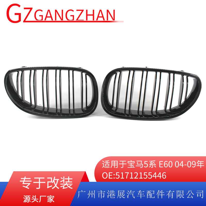 Подходит для BMW 5 серии E60 (2003-2009), передняя решетка радиатора, передний бампер, глянцевая черная решетка с двойными ламелями, решетка воздухозаборника.