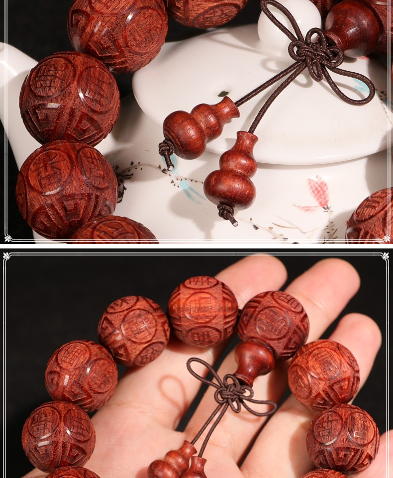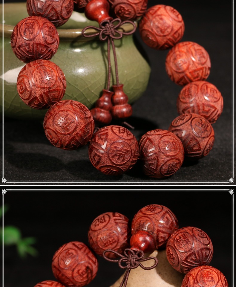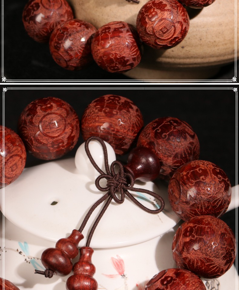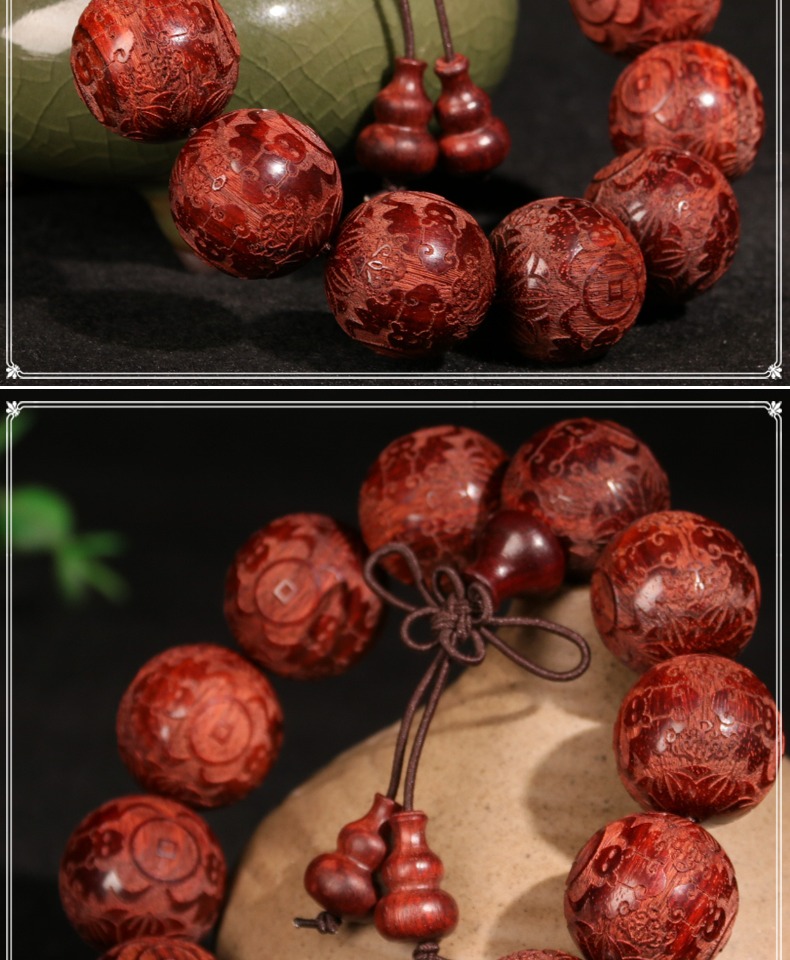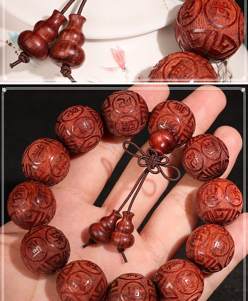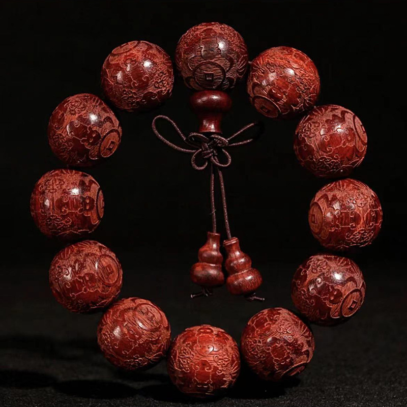 Африканский дольчатый красный сандаловый браслет из сандалового дерева с кровью трендовая резьба по тексту играть четки, чтобы заработать деньги в сокровище Браслет из бусин Будды для мужчин и женщин