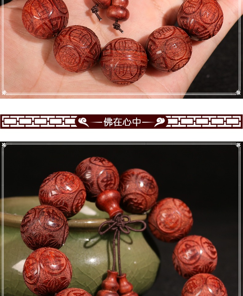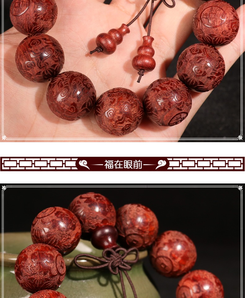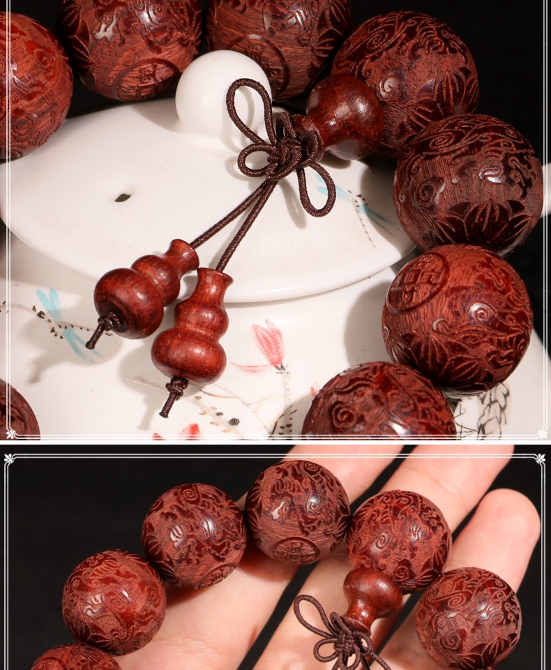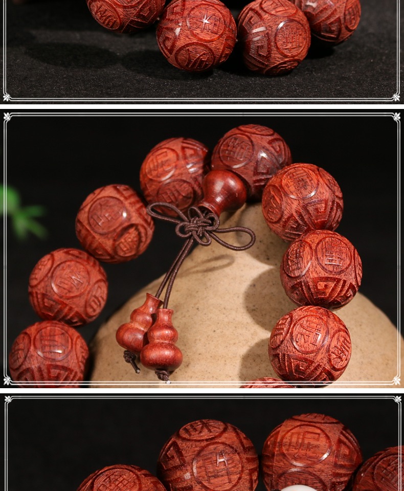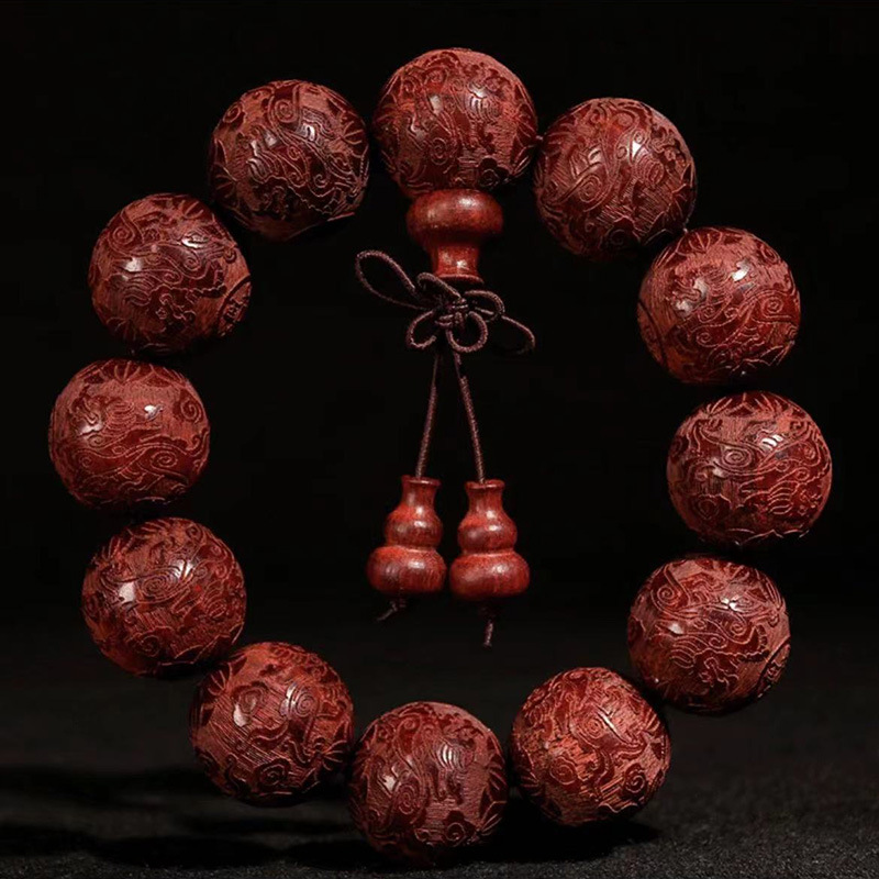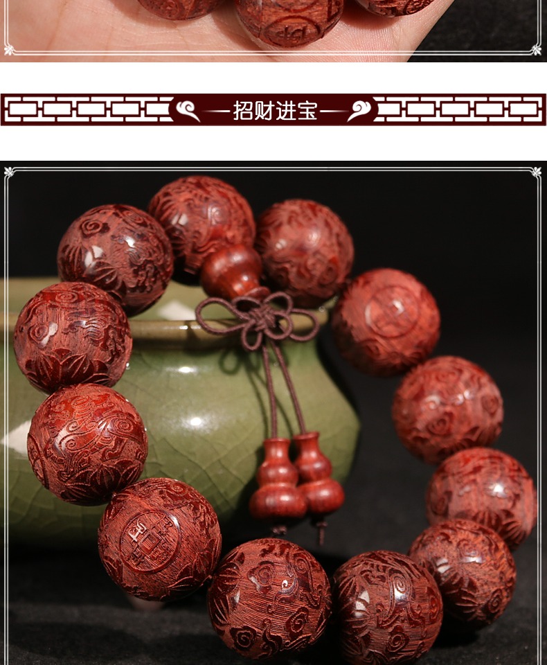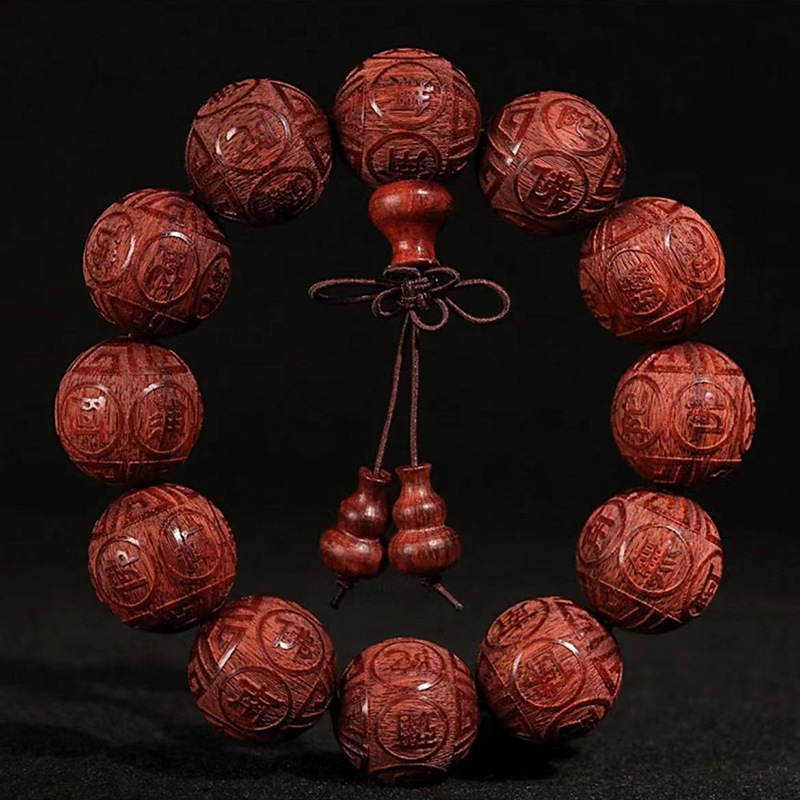 Африканский дольчатый красный сандаловый браслет из сандалового дерева с кровью трендовая резьба по тексту играть четки, чтобы заработать деньги в сокровище Браслет из бусин Будды для мужчин и женщин