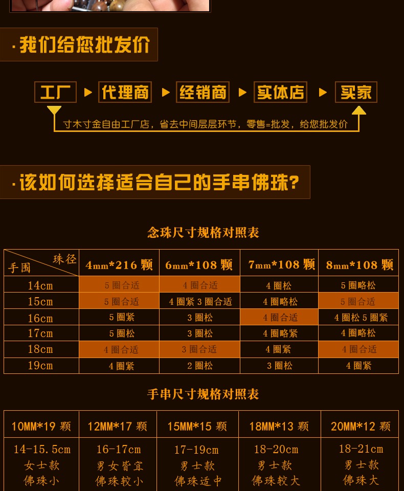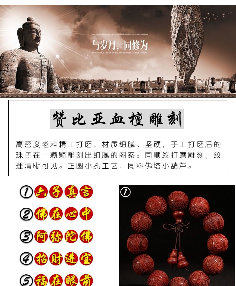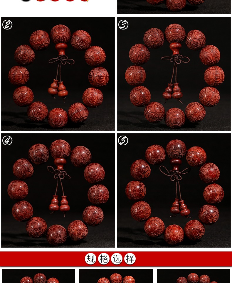 20 мм * 12 частиц (пословицы из шести слов); 20 мм * 12 частиц (Будда в сердце); 20 мм * 12 гранул (Амитабха); 20 мм * 12 частиц (богатство); 20 мм * 12 частиц (благо в поле зрения)