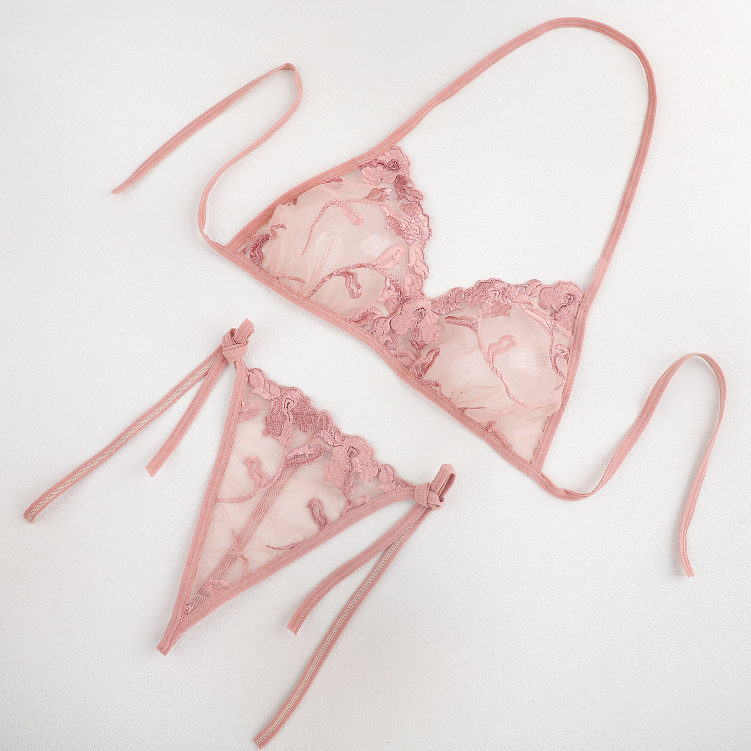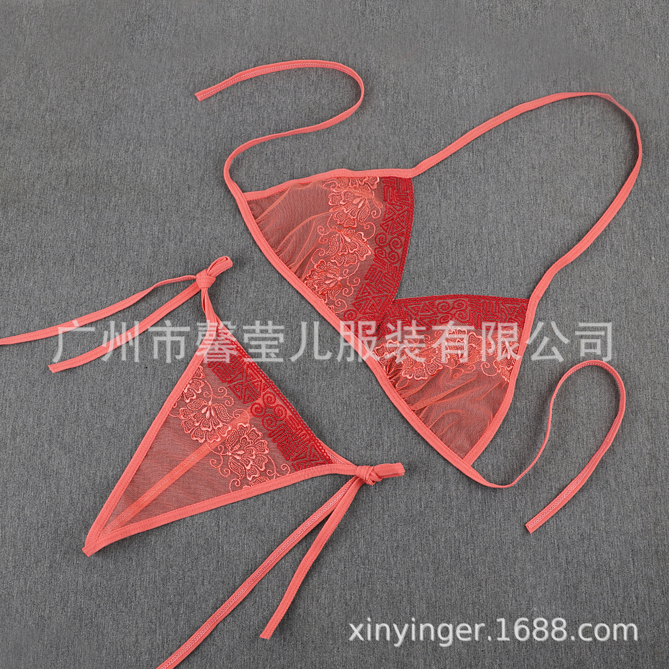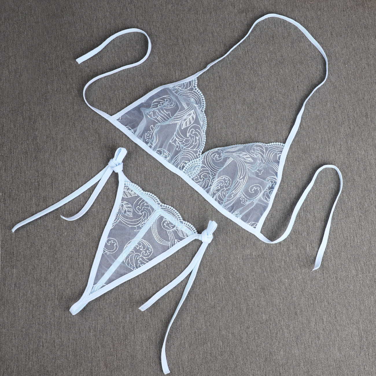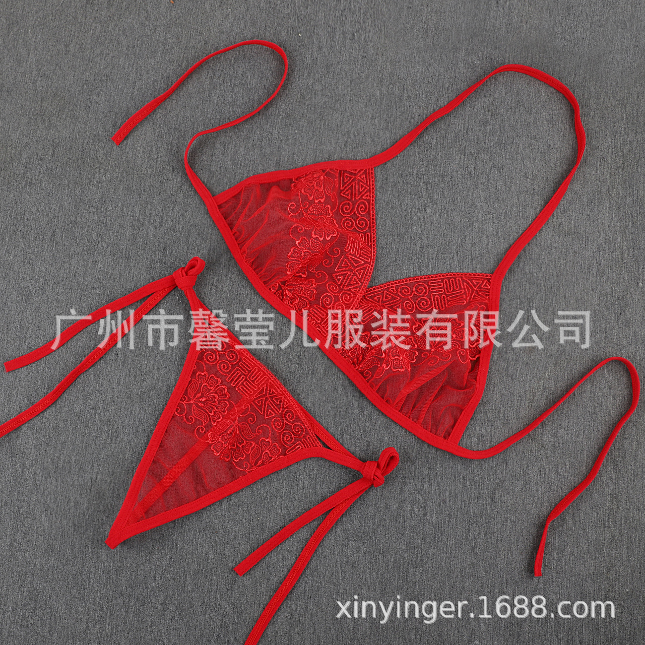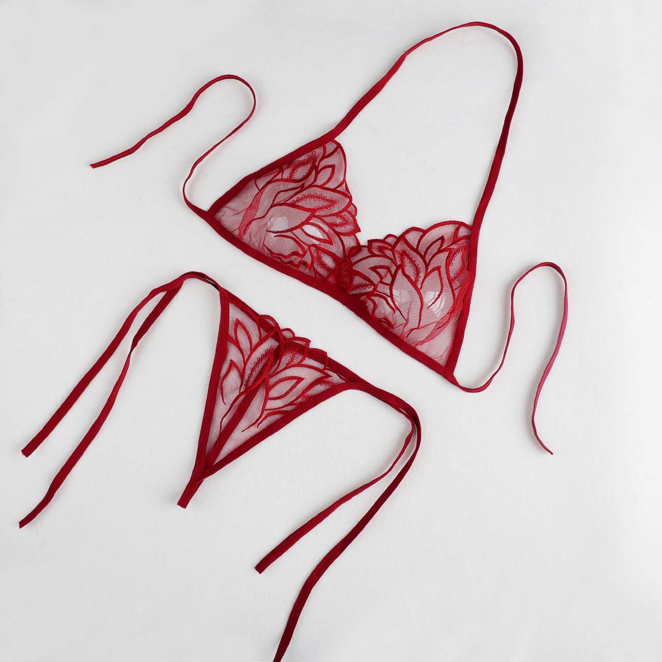 Трансграничная фабрика нового продукта Вышивка Цветочная забавная трехточечный костюм Прозрачный сетчатый ремешок Нижнее белье