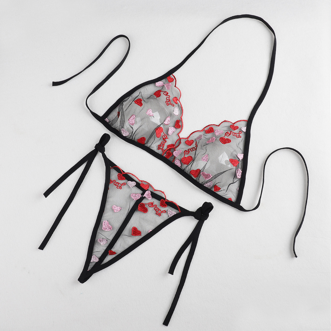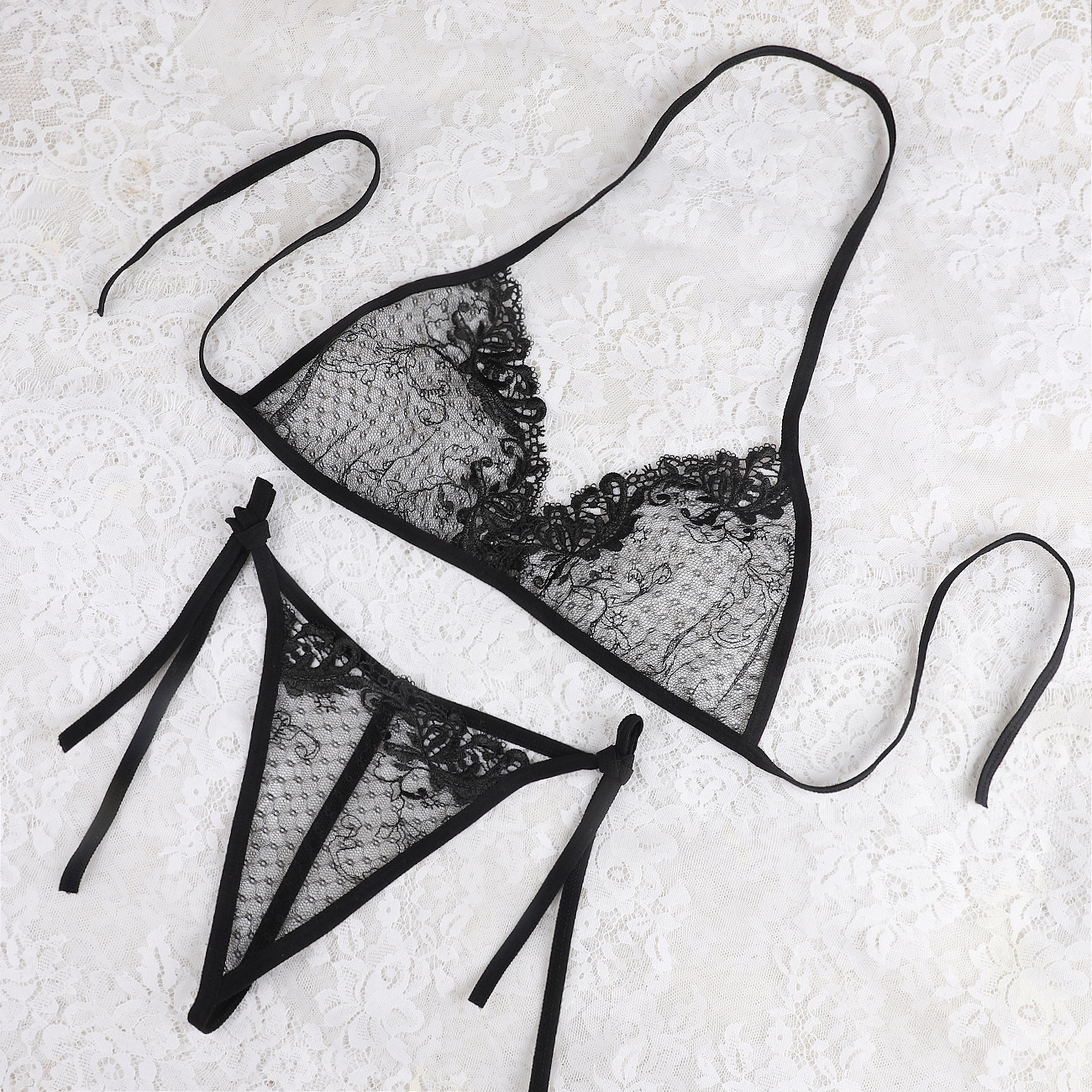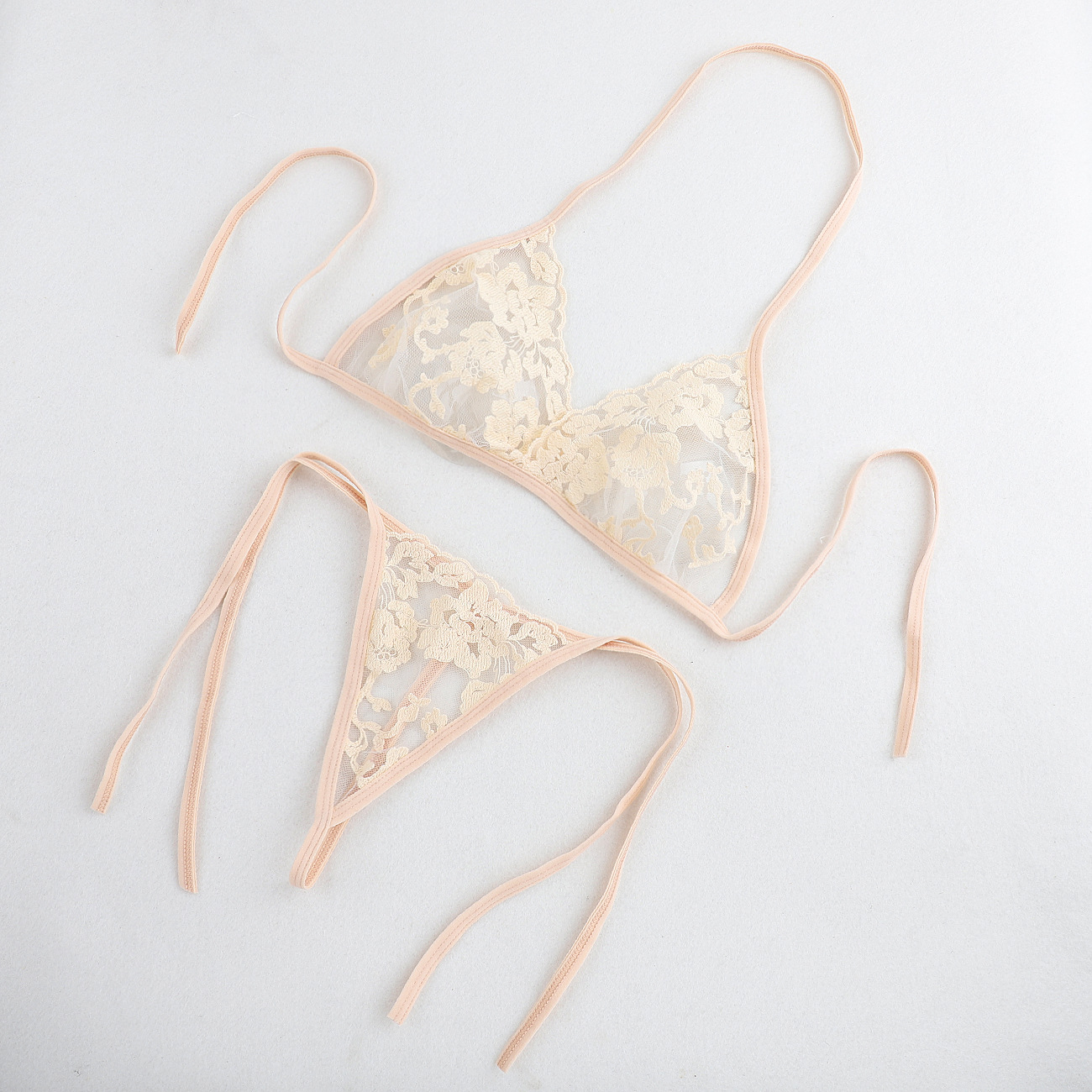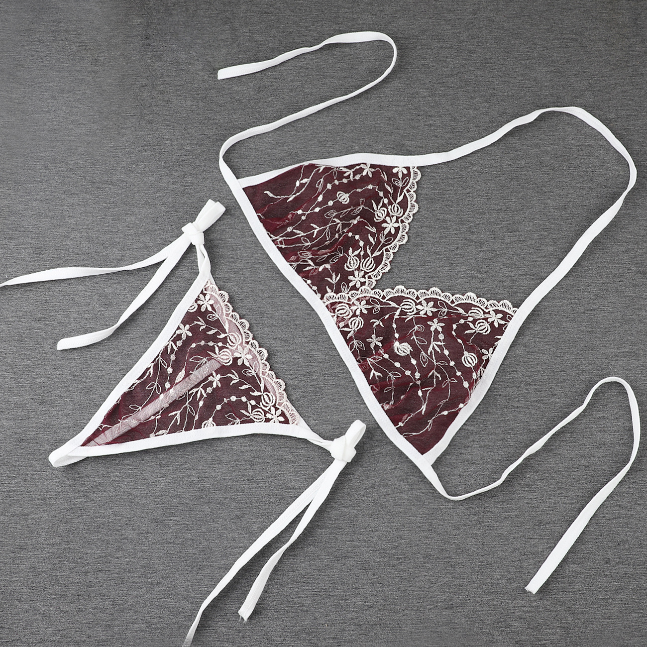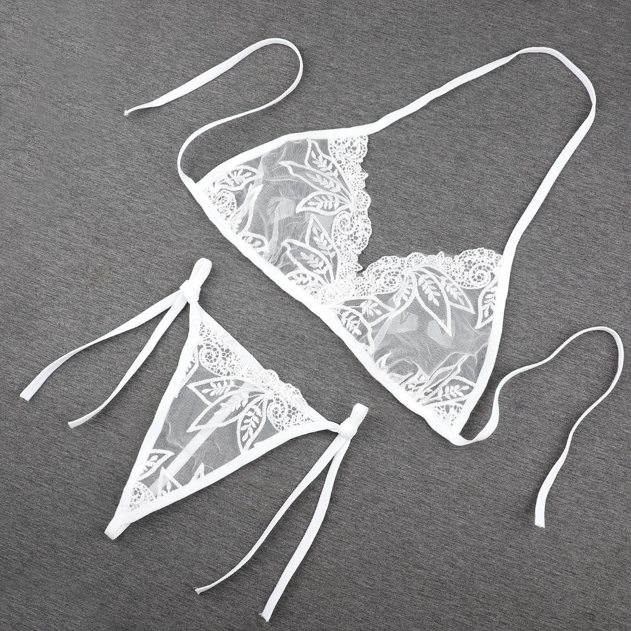 Трансграничная фабрика нового продукта Вышивка Цветочная забавная трехточечный костюм Прозрачный сетчатый ремешок Нижнее белье