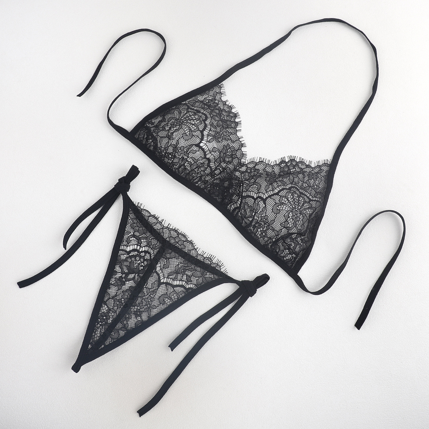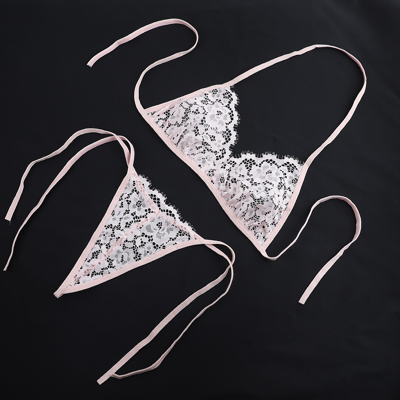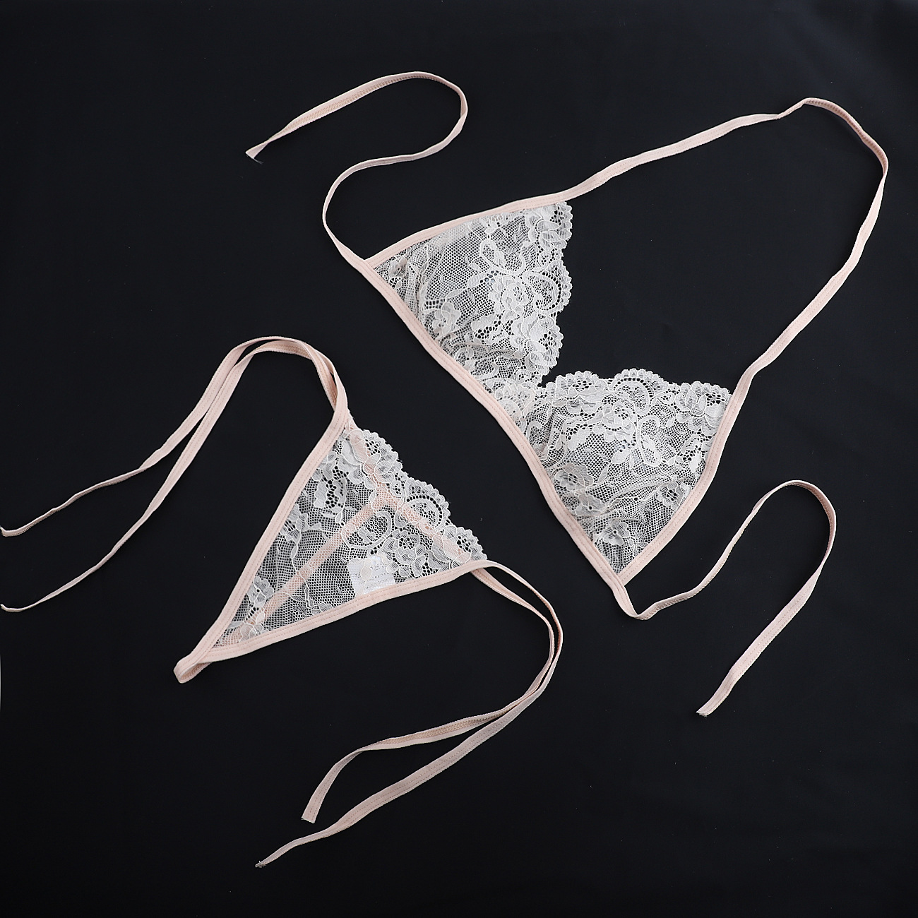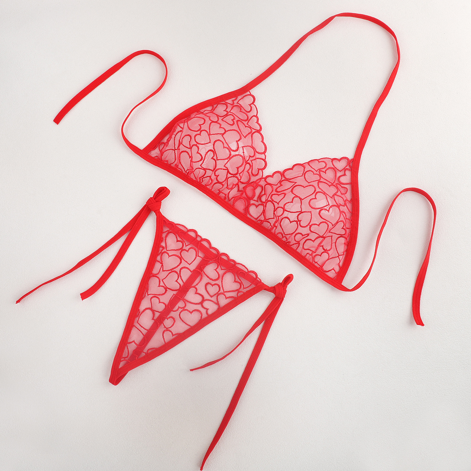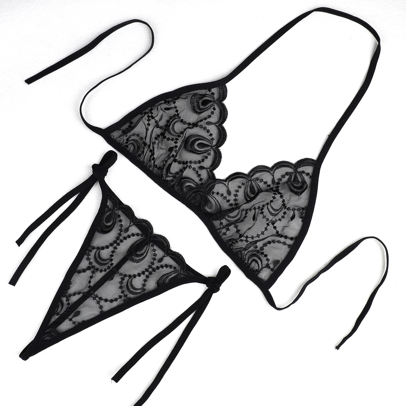 Трансграничная фабрика нового продукта Вышивка Цветочная забавная трехточечный костюм Прозрачный сетчатый ремешок Нижнее белье