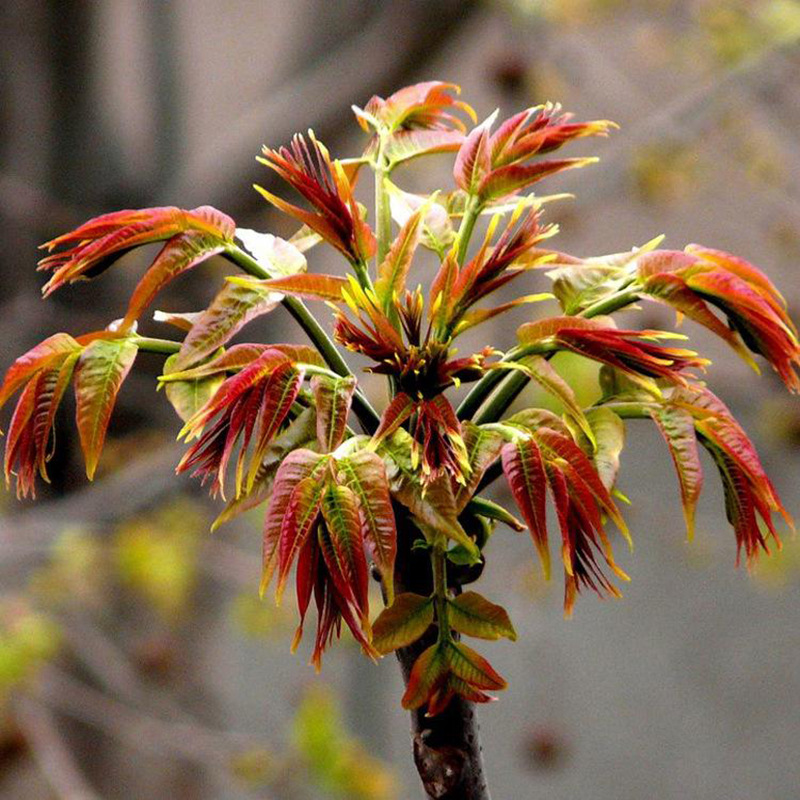 椿树苗品种分为红香椿树苗和绿香椿树苗两大类型。红香椿品种食味好,品质佳,市场上深受欢迎。根据我县菜农的种植经验,目前适宜日光温室栽培的品种主要是红椿1号和红椿6号,二者品质好、产量高,是两个很好的菜芽兼用品种。香椿树苗喜温,适宜在平均气温8—10℃的地区栽培,抗寒能力随苗树龄的增加而提高。用种子直播的一年生幼苗在一10℃左右可能受冻。香椿苗喜光,较耐湿,适宜生长于河边、宅院周围肥沃湿润的土壤中,一般以砂壤土为好。