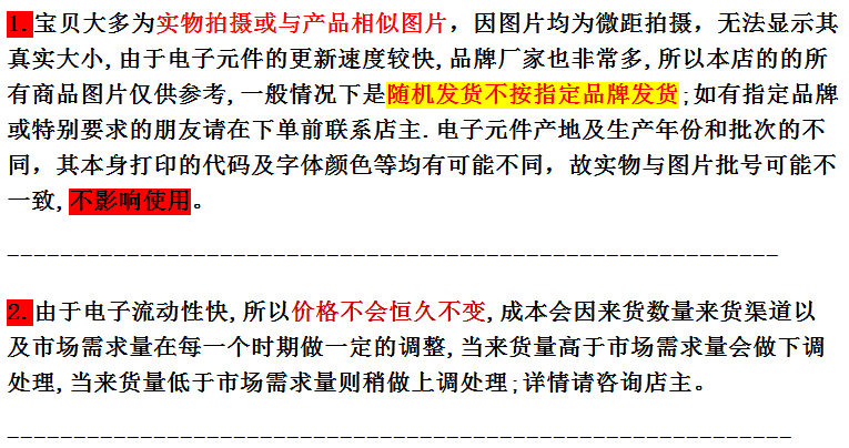 注:由于产品种类繁多,未能一一上传,如在本店没能找到对应型号,请与店主详细咨询,凡购买货物前请各买家先与店主确认是否有库存,避免对各买家造成不必要的麻烦,谢谢!