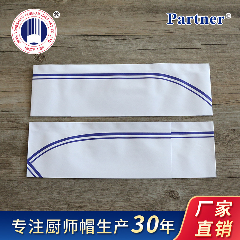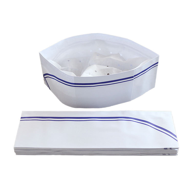 Оптовые одноразовые шапочки для поваров, бумажные шапочки для кухонных работников, шапочки из древесной массы 80 г, синие бумажные шапочки с двойной полосой