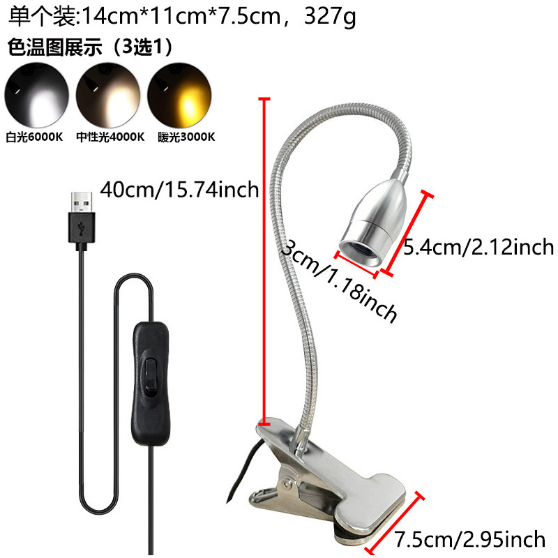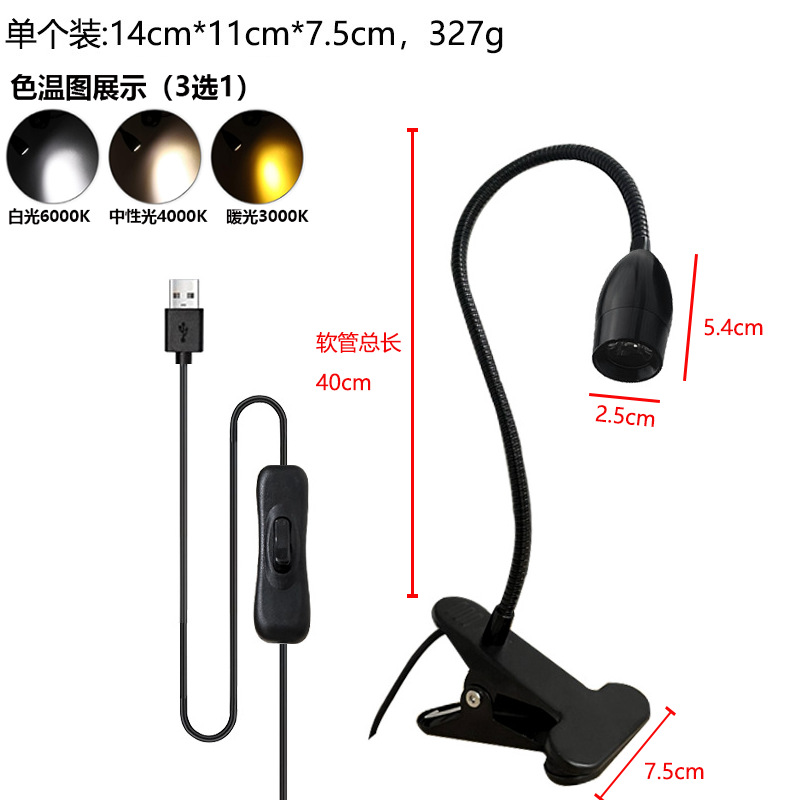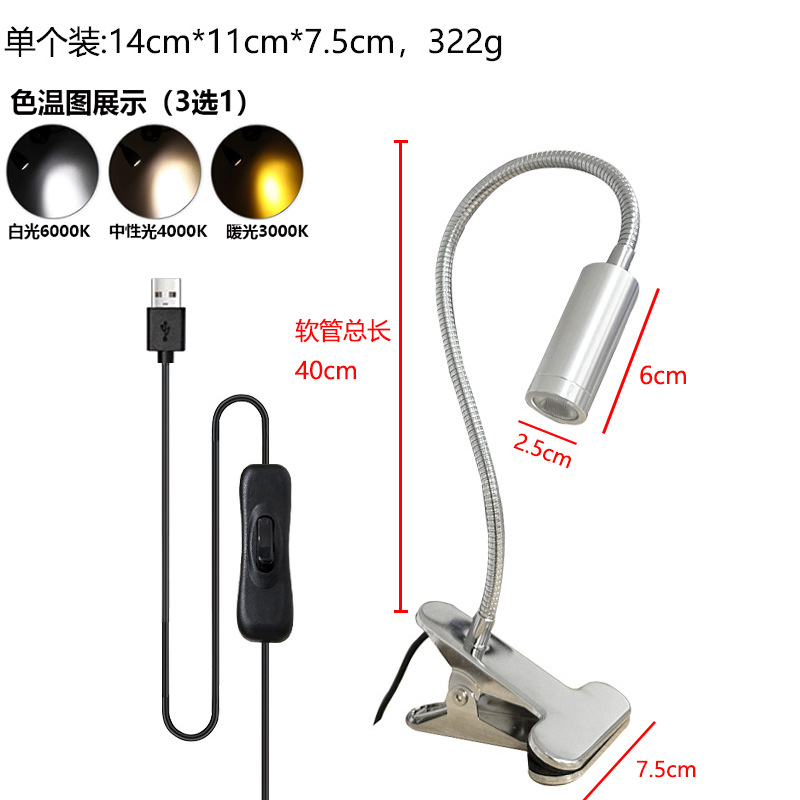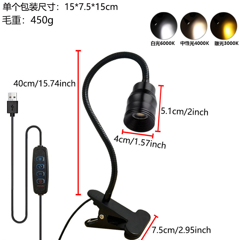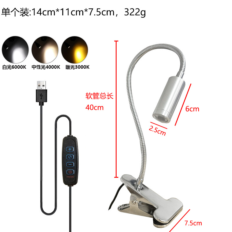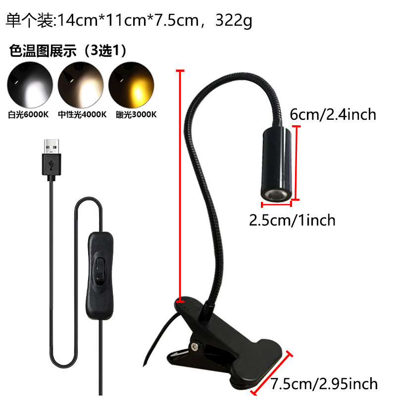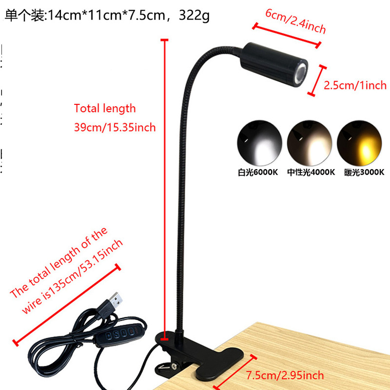 Светодиодная настольная лампа-прожектор, лампа с зажимом для шланга, прикроватная лампа для учебы с зажимом