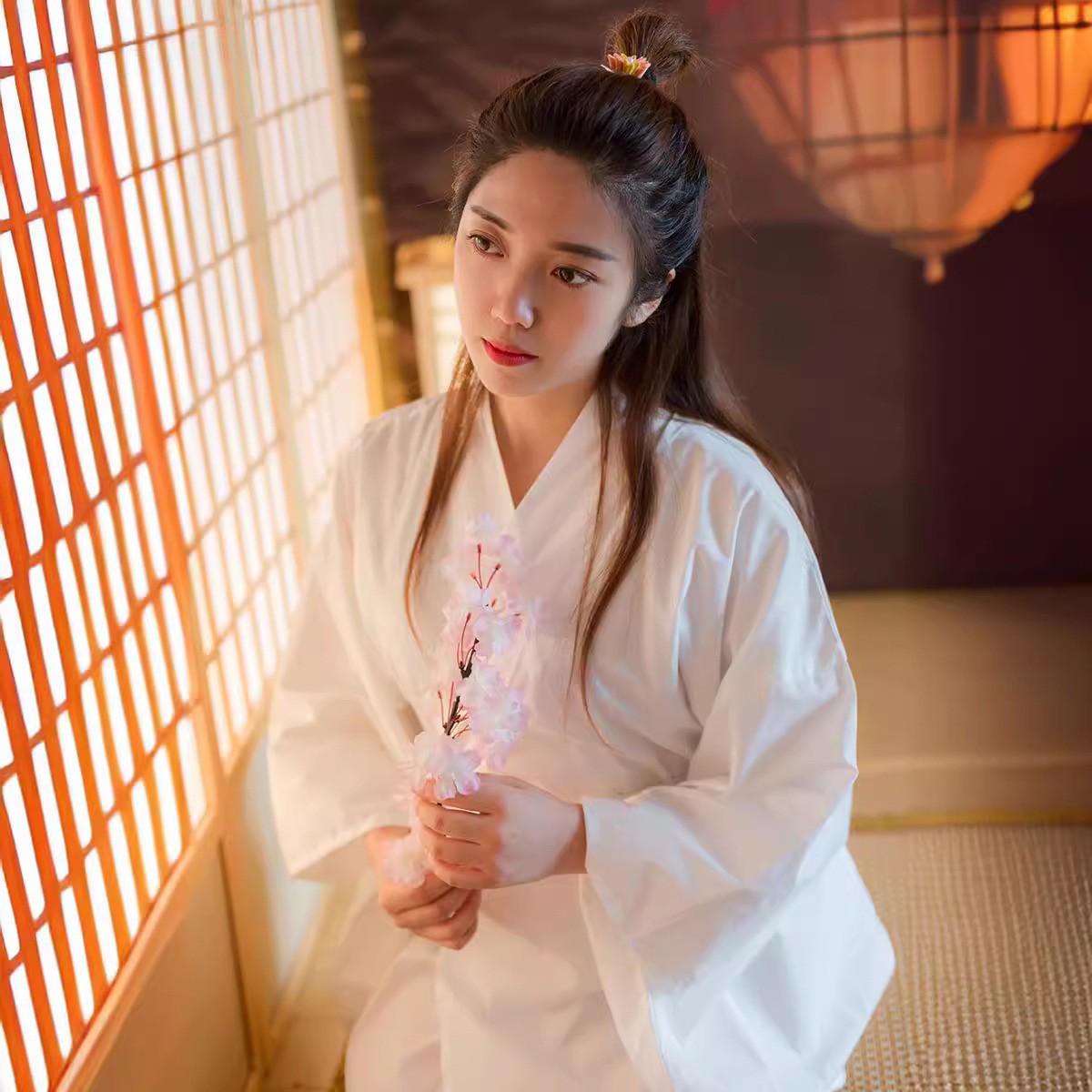 Японское кимоно белое мышечное петля подкладка кимоно лайнер нижняя рубашка долго в наличии