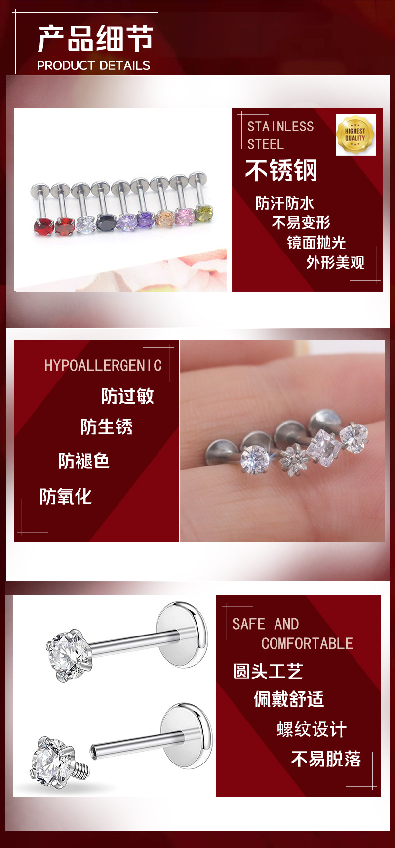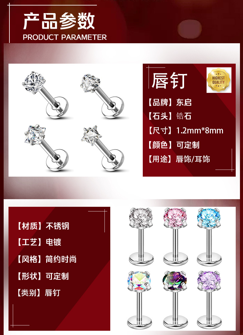 Оптовая унисекс человеческого тела пирсинг губы ногтей 3 мм круглый Циркон губы ногтей человека внутренние зубы губы ногтей